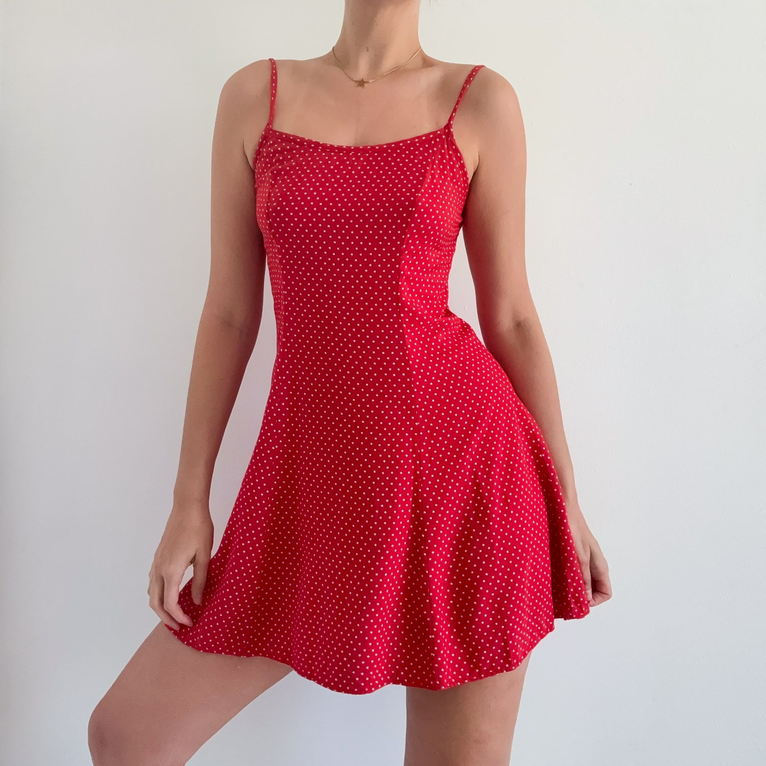 70's Red Flower Polka Dot Mini Slip Dress / SZ S/M