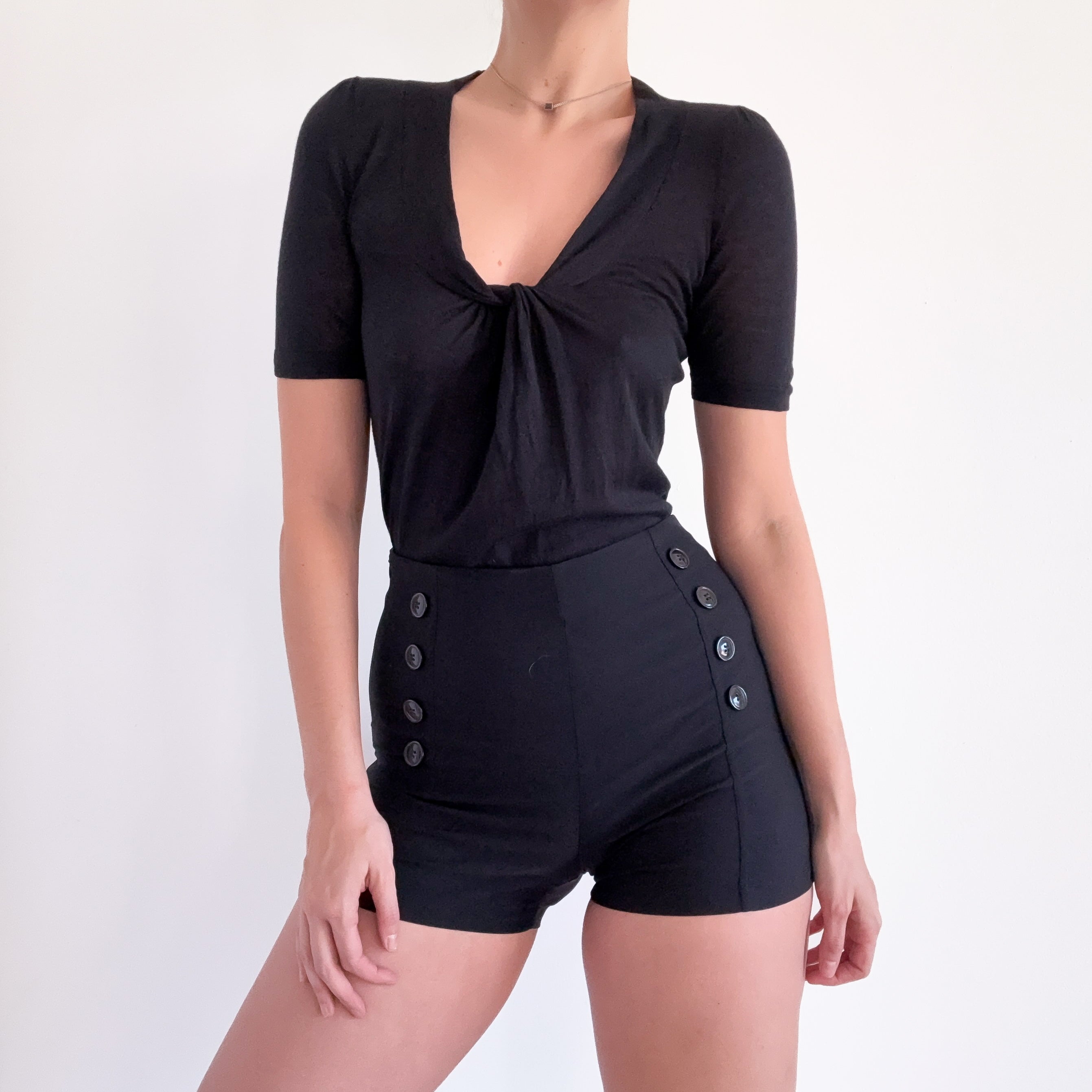 Y2K Black Cotton Button Capri's / SZ 4/6