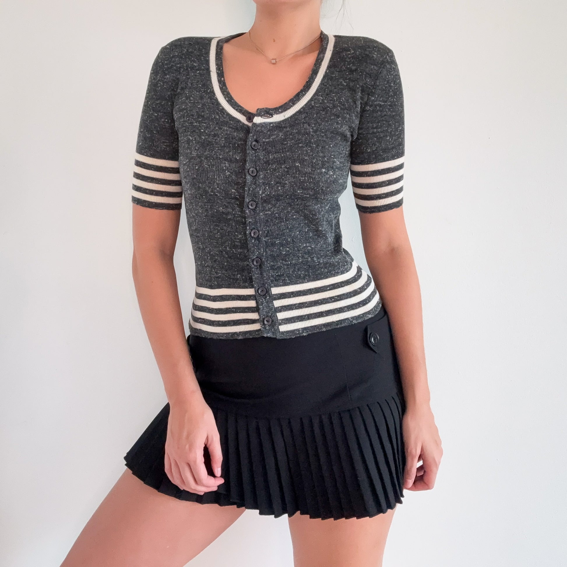 70's Grey & Ivory Knit Varsity Cardigan / SZ S-M