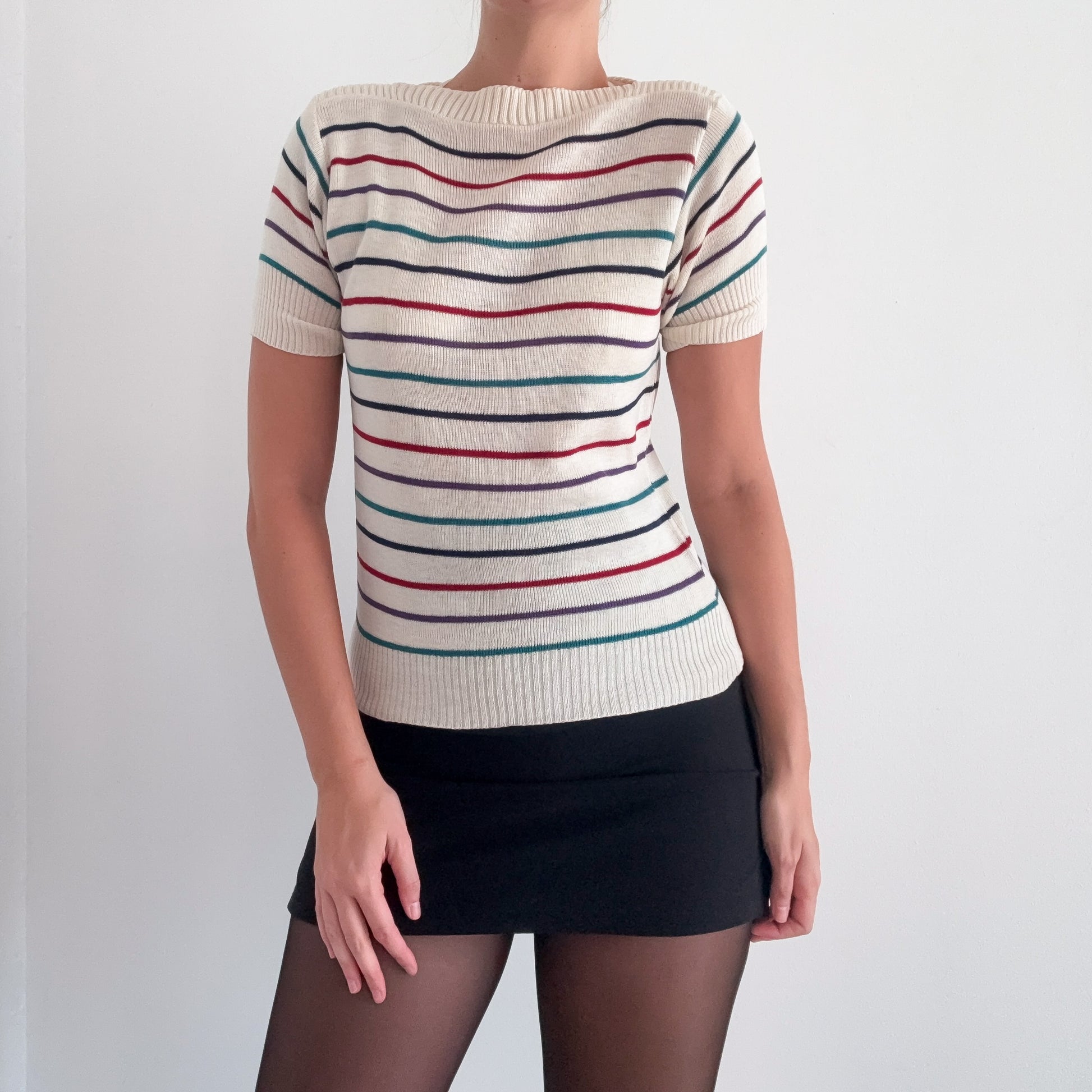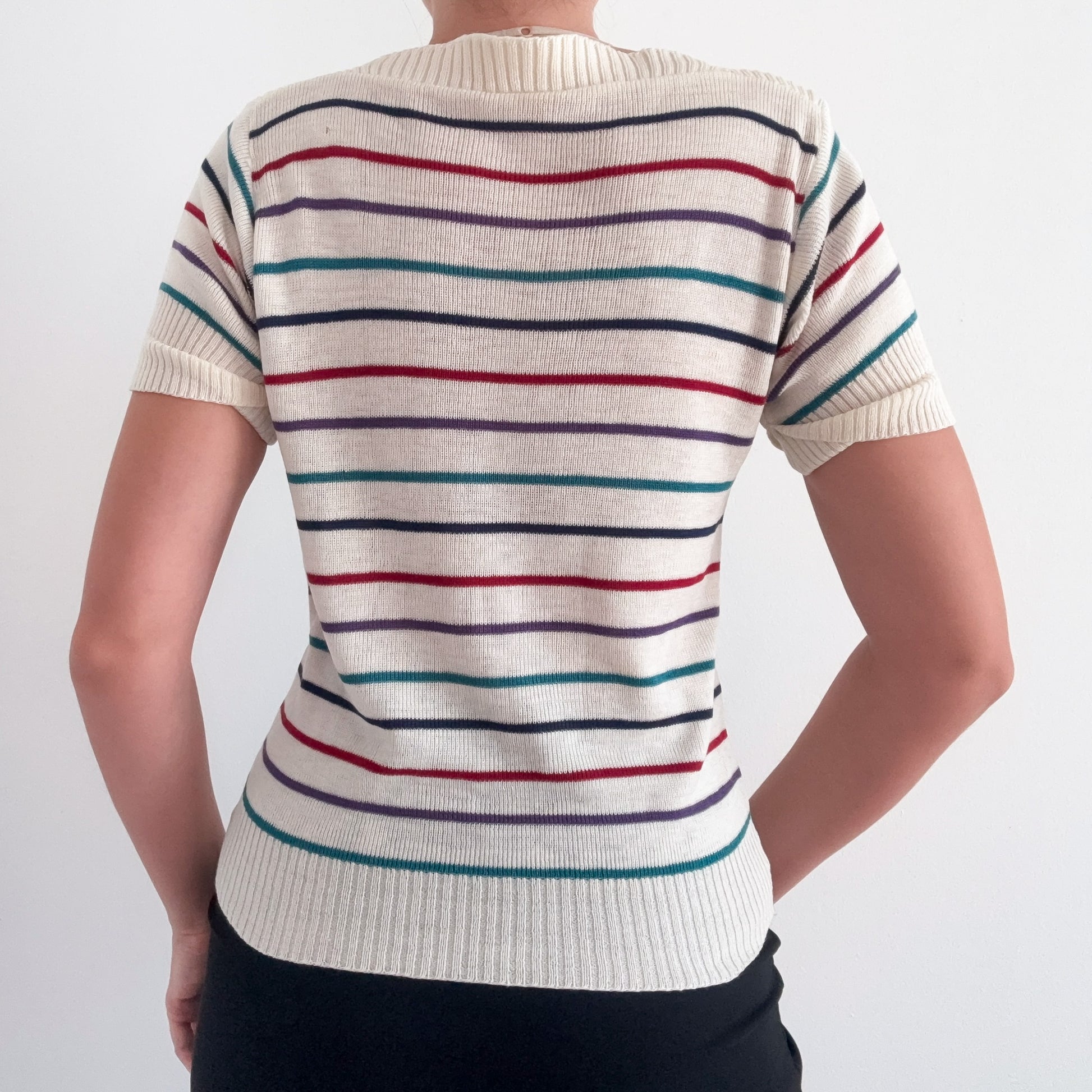 100% acrylic--knit--from the 80's, made in the USA--high neck--cuffed sleeves (forget to cuff when modeling, oops hehe)