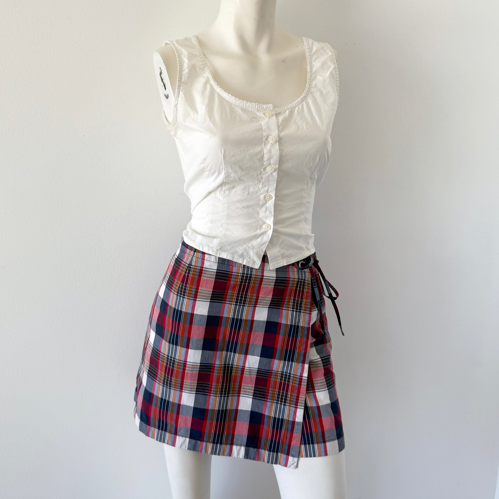90's Ann Taylor Navy & Red Plaid Skort / SZ 2
