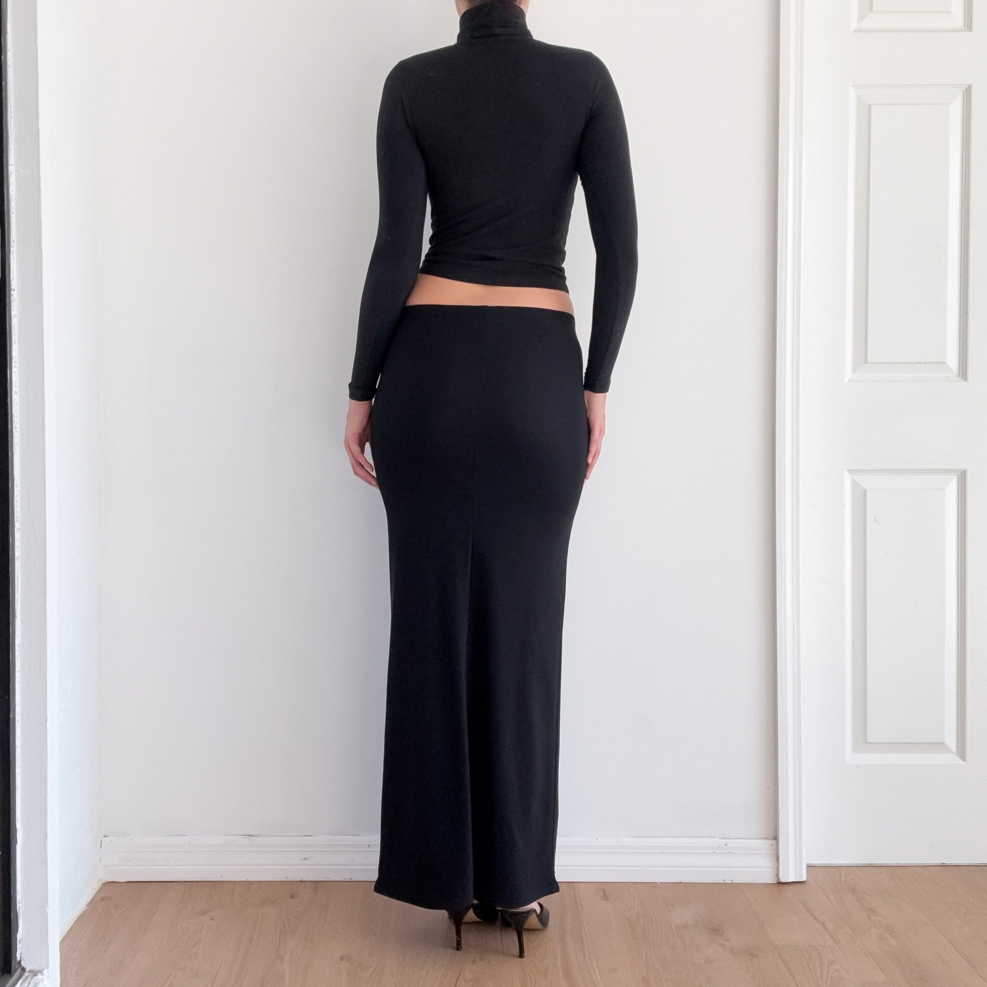 90's Black Fitted Maxi Skirt / SZ S-M
