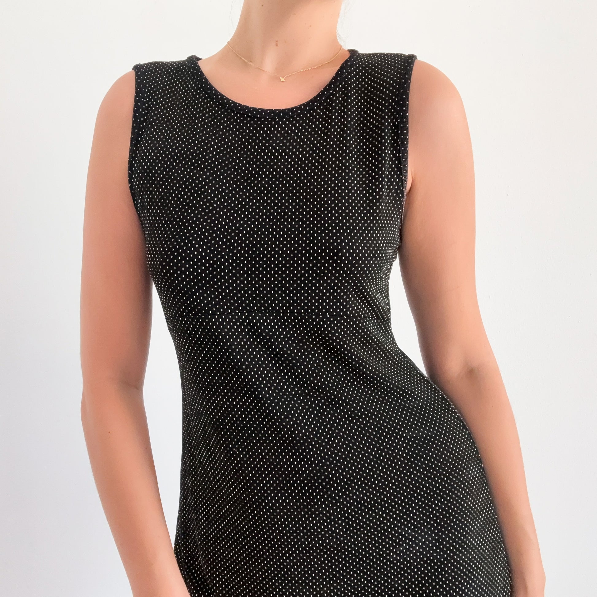 90's Black Polka Dot Slinky Mini Dress / SZ M-L