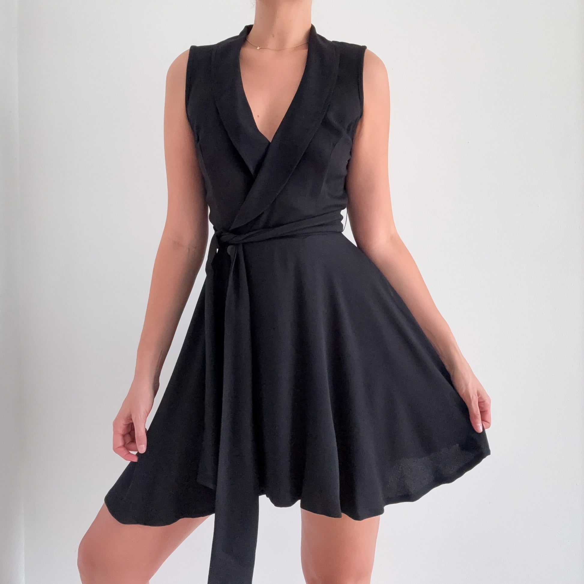 90's Black Wrap Flare Mini Dress / SZ S-M