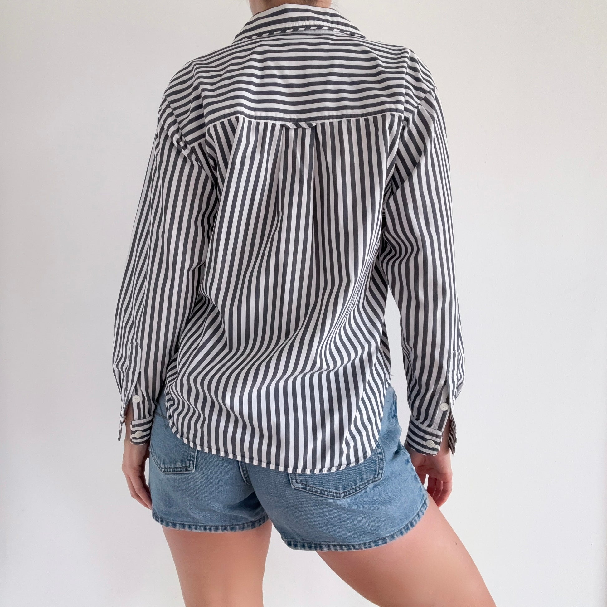 90's Chambray Blue Striped Cotton Blouse / SZ L
