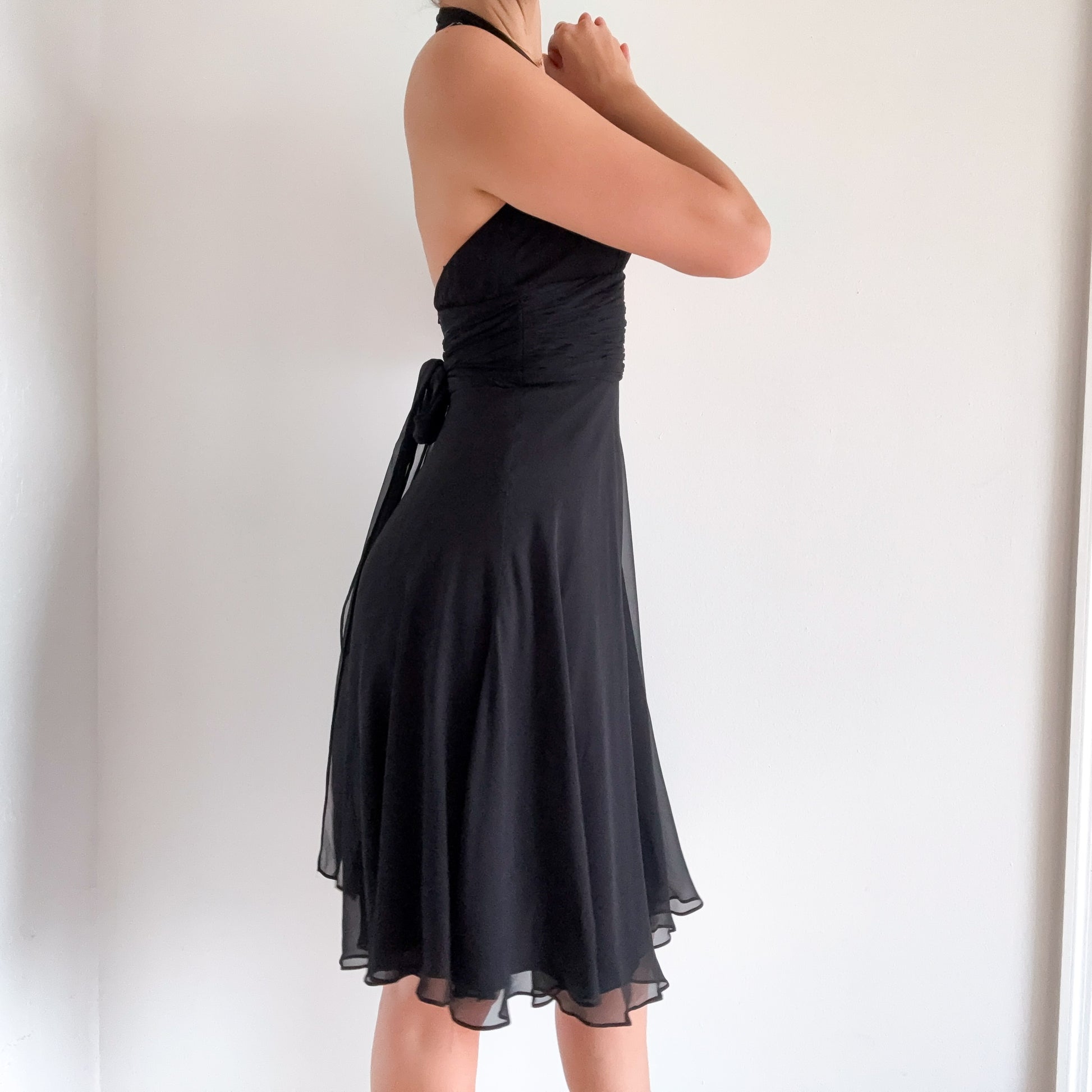 90's Maggy London Black Silk Halter Dress / SZ 2-4