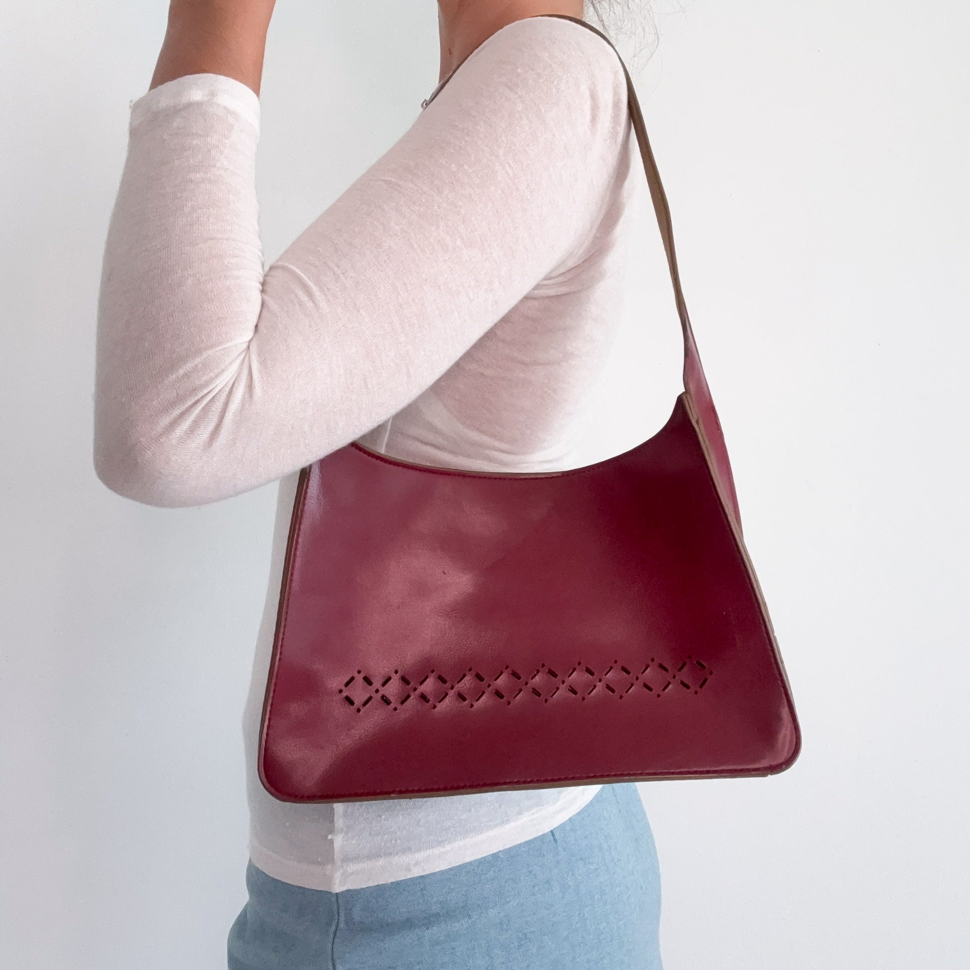90's Maroon Faux Leather Handbag