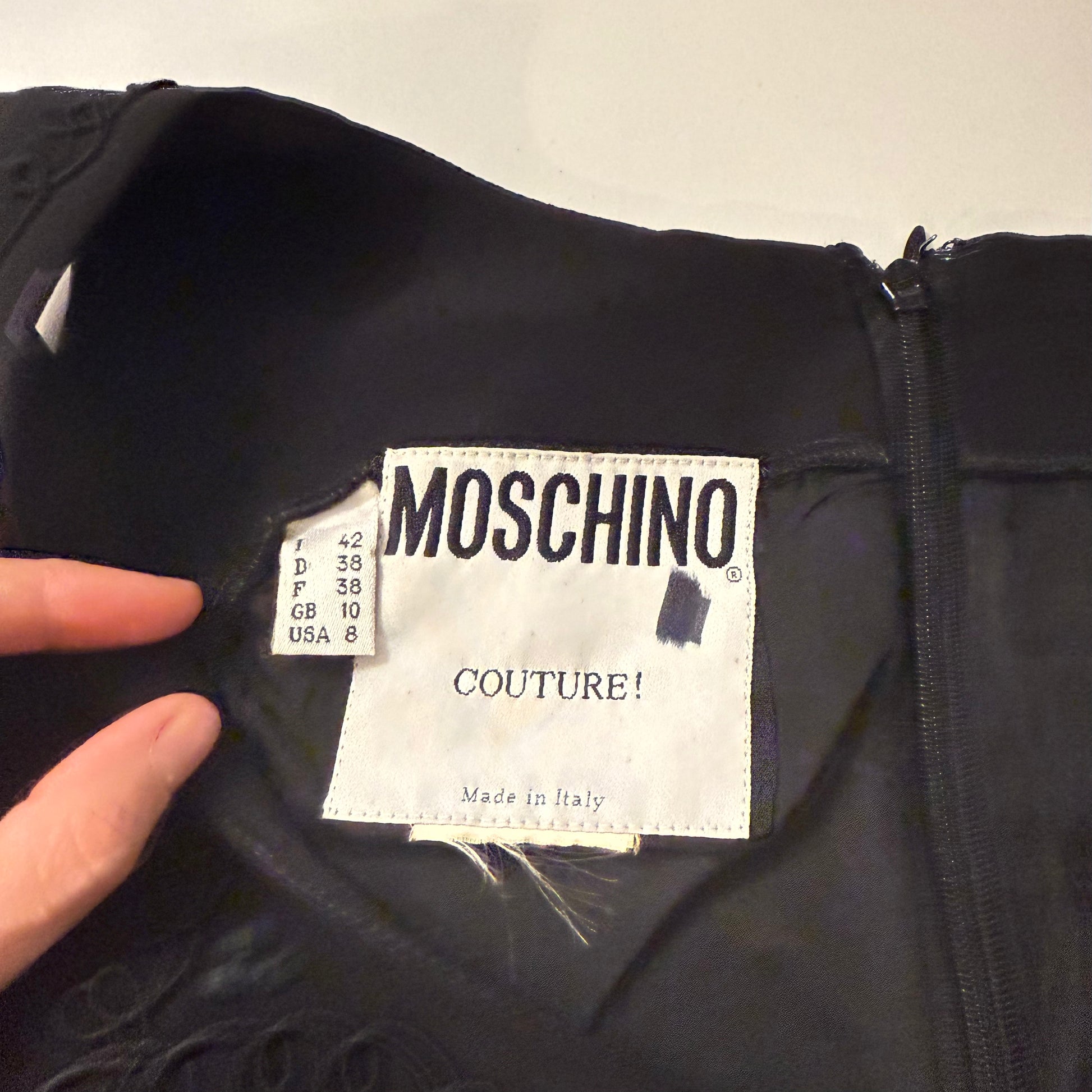 90's Moschino Black Embroidered Mini Dress / SZ 0