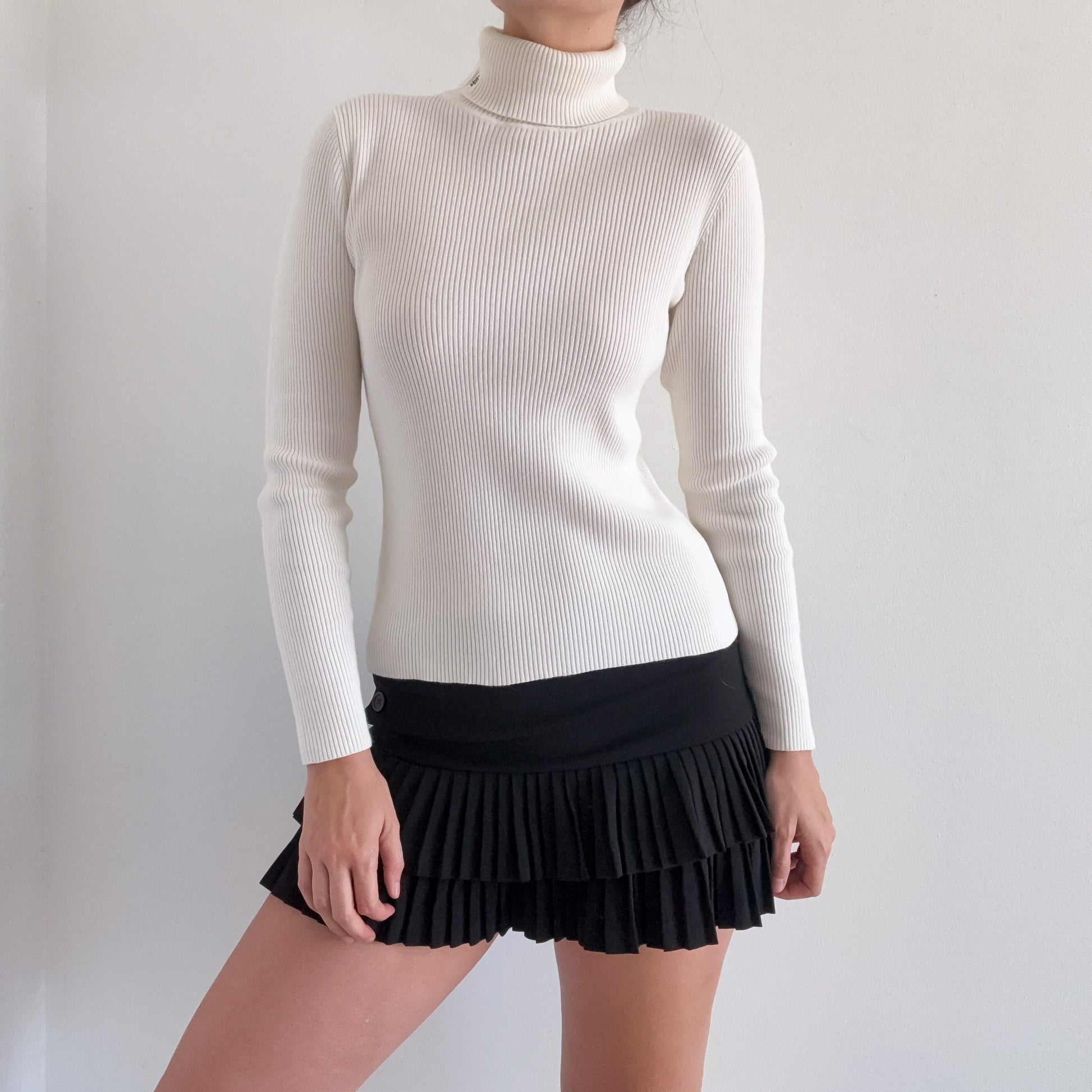 90's Ralph Lauren White Cotton Turtleneck / SZ S