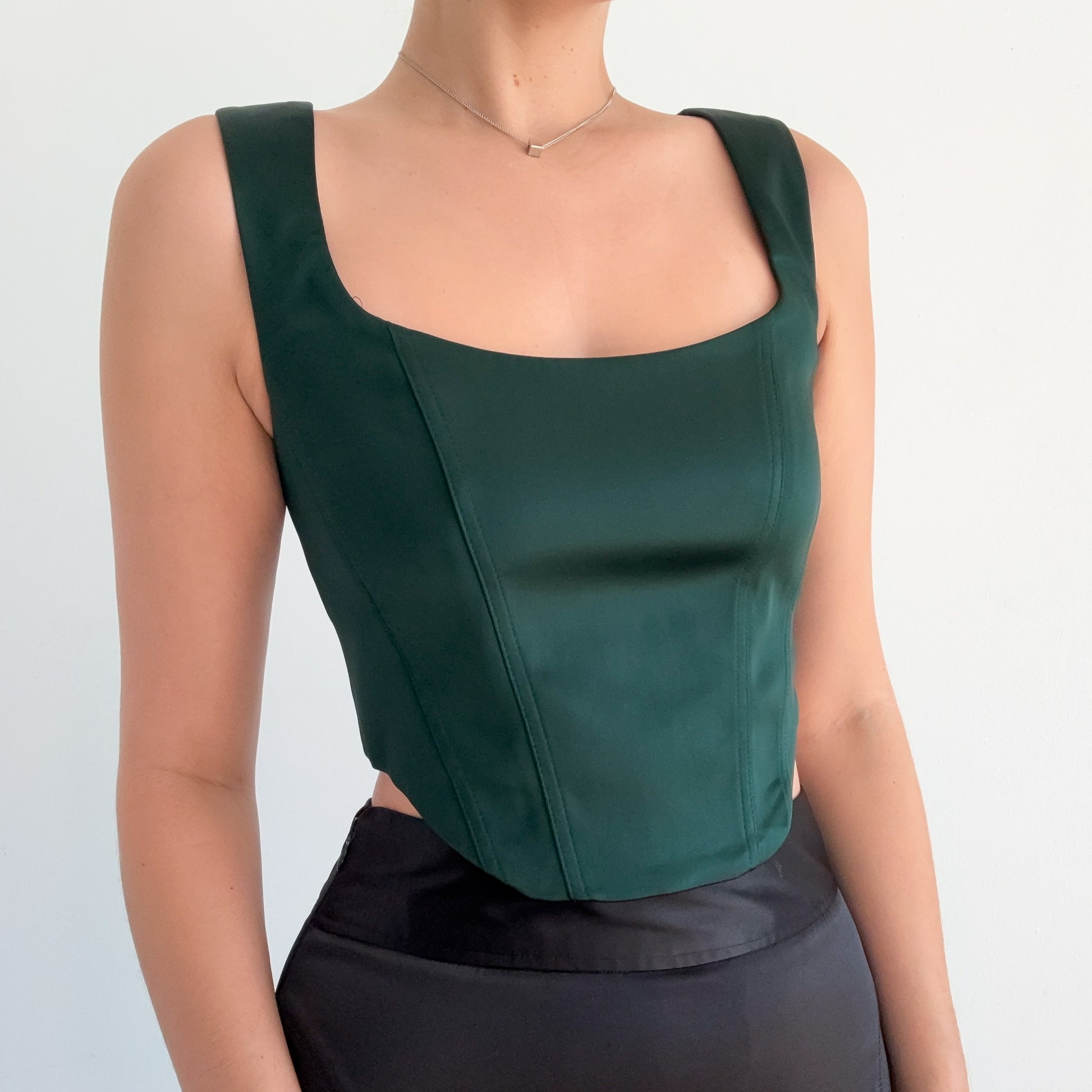 Aritzia Emerald Satin Corset Top / SZ S