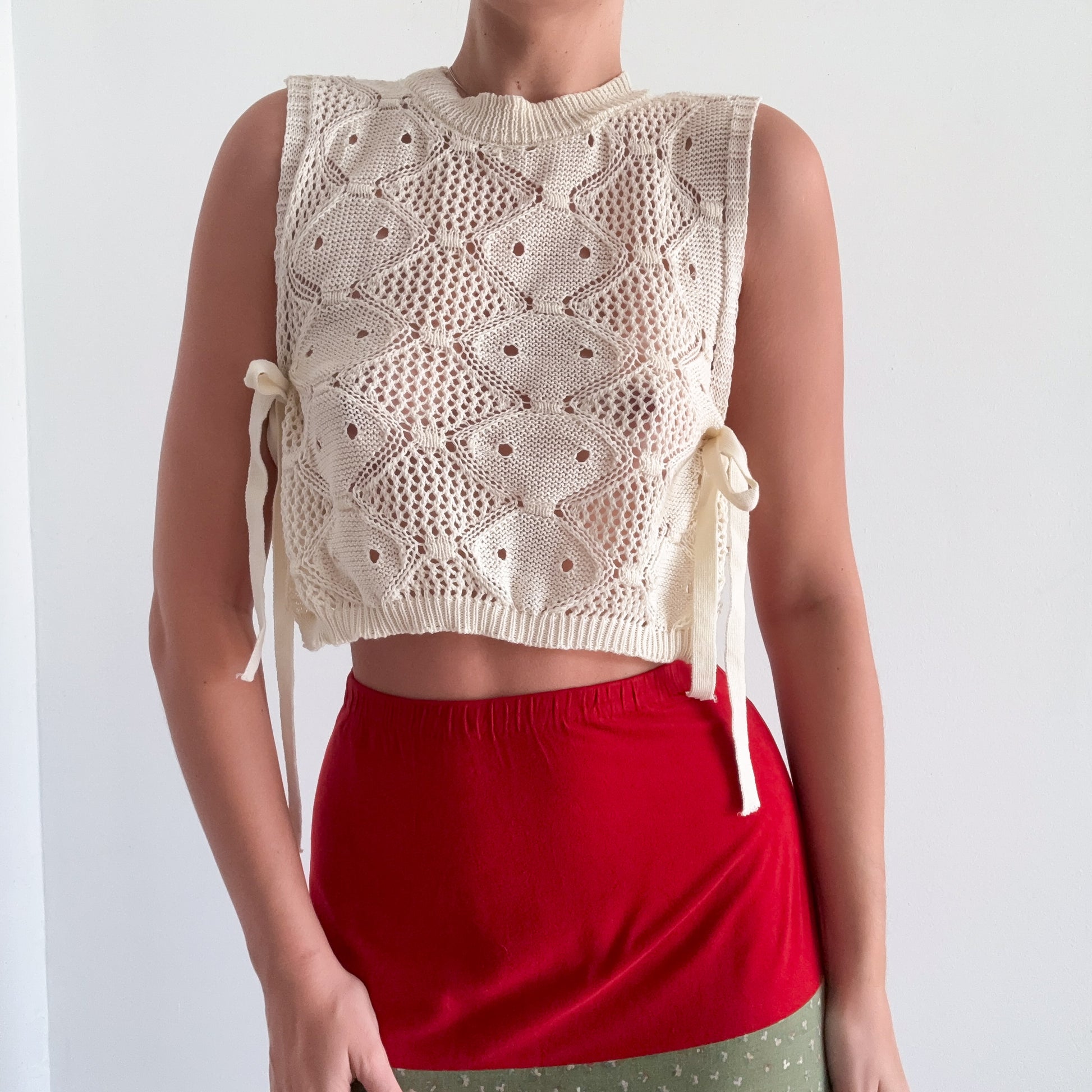 Contemporary Cream Knitted Tie Top / SZ M-L
