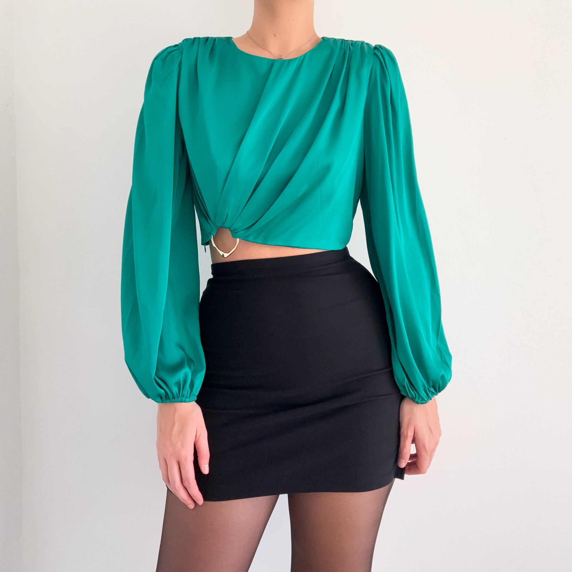 Contemporary Green Balloon Sleeve Blouse / SZ M