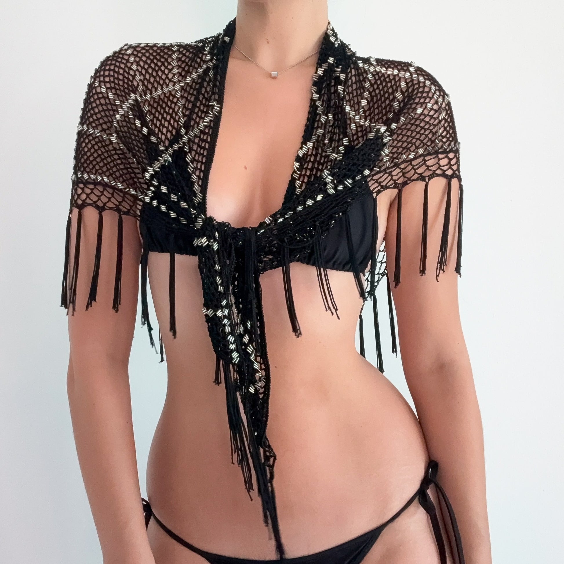 Italian Crochet Beaded Fringe Shawl / Sarong
