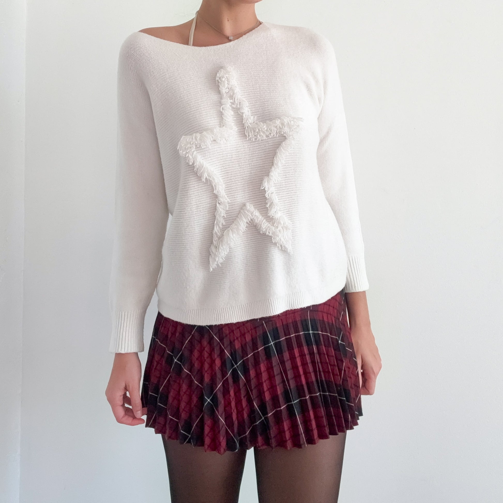 viscose pbt nylon blend--medium weight knit--**not vintage, from a store in Design District in Miami--fringe texture in the shape of a star--can be worn off the shoulder--has some pilling