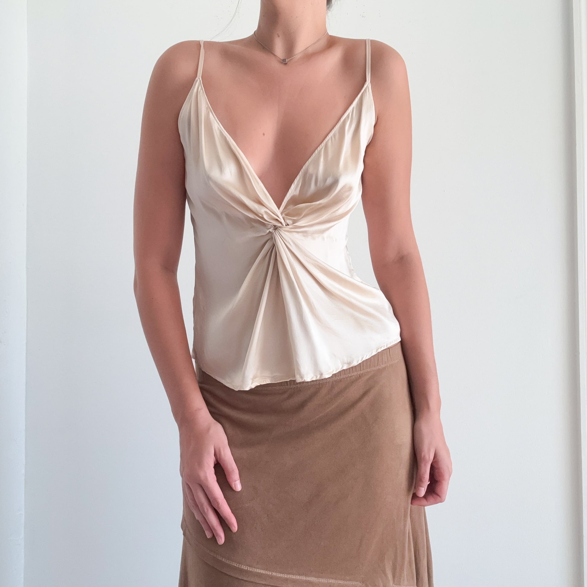 100% silk--from Reformation--adjustable straps--plunging twist neckline--has some minor faint staining