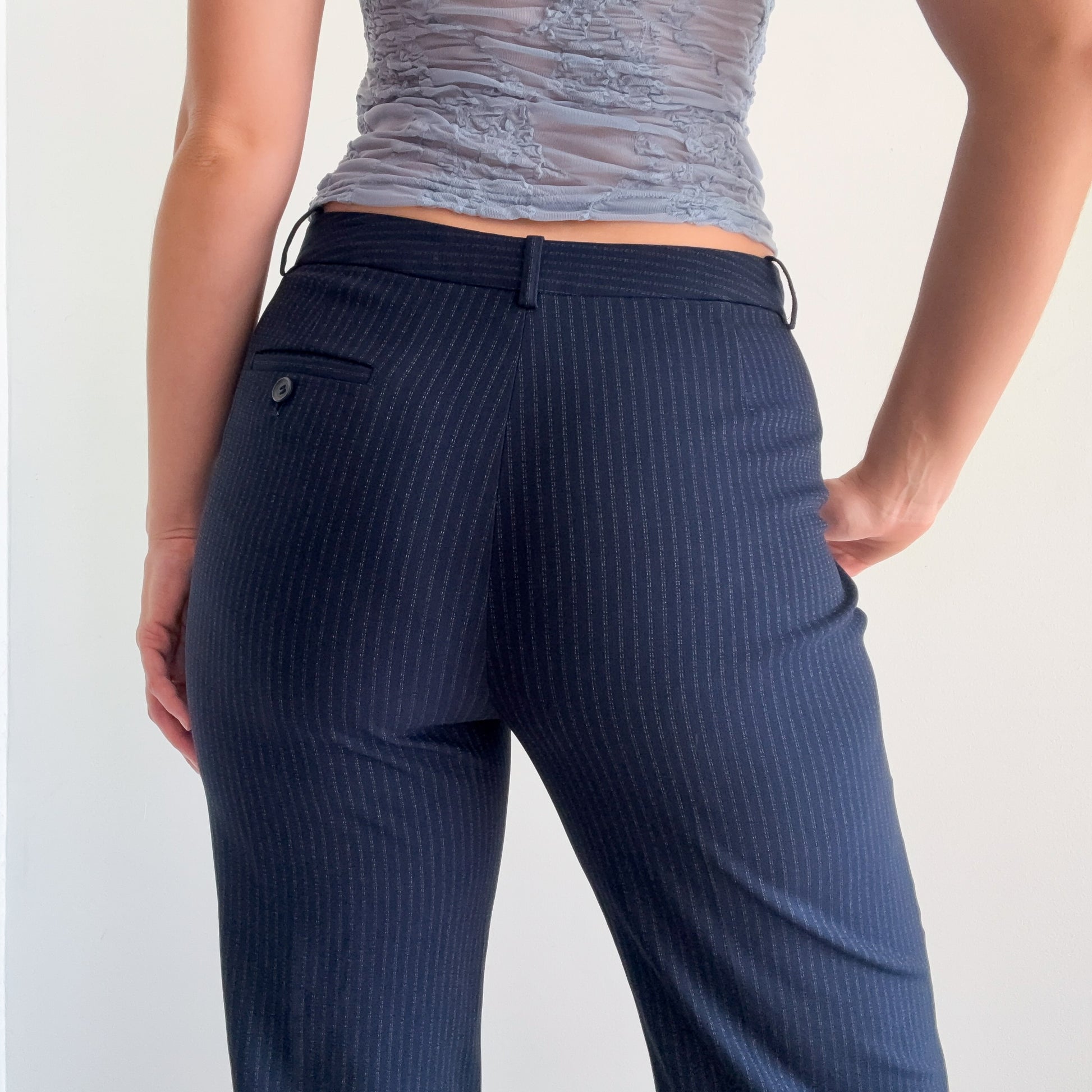 poly rayon spandex blend (suit-like material)--belt loops--cuffed hem--side pockets--one back pocket