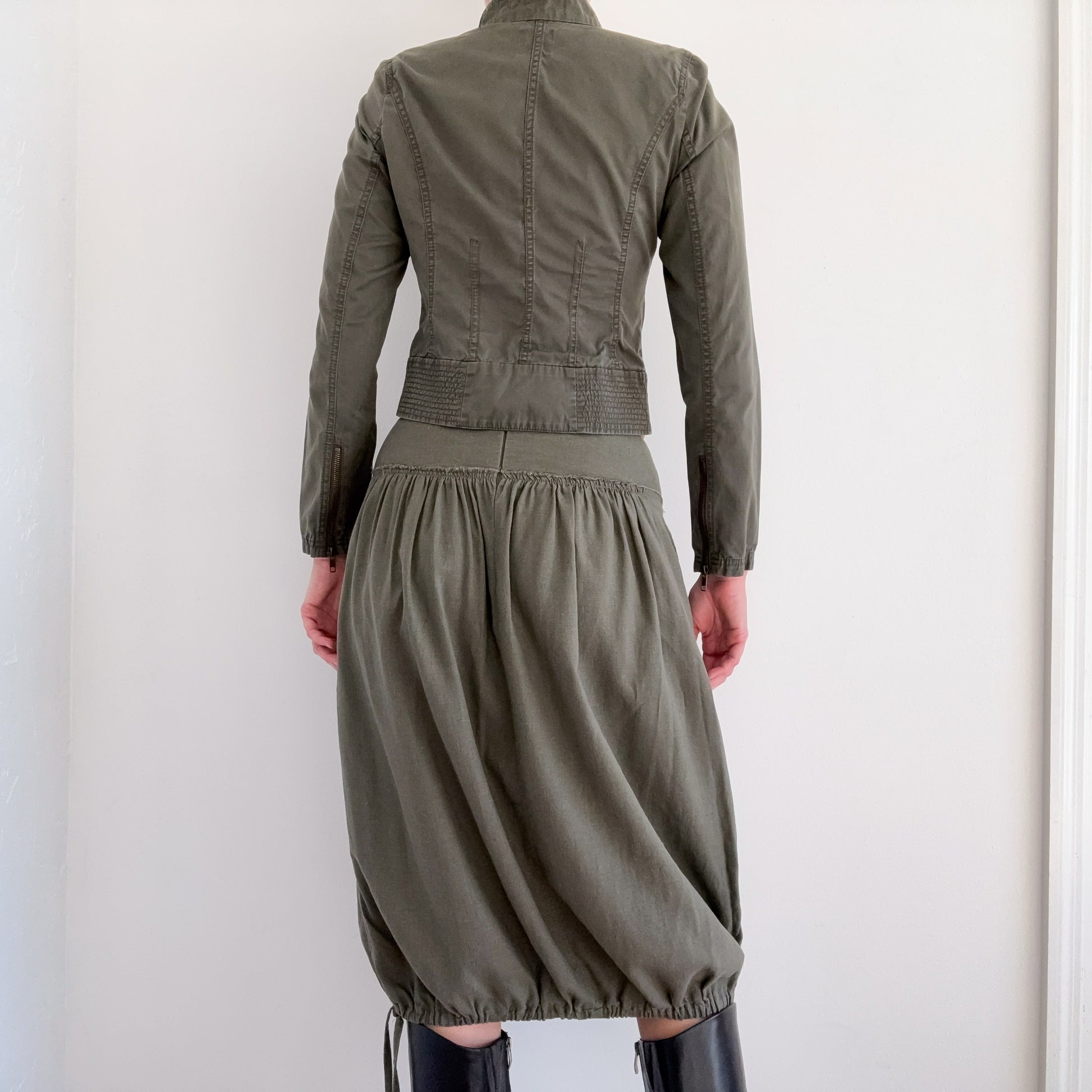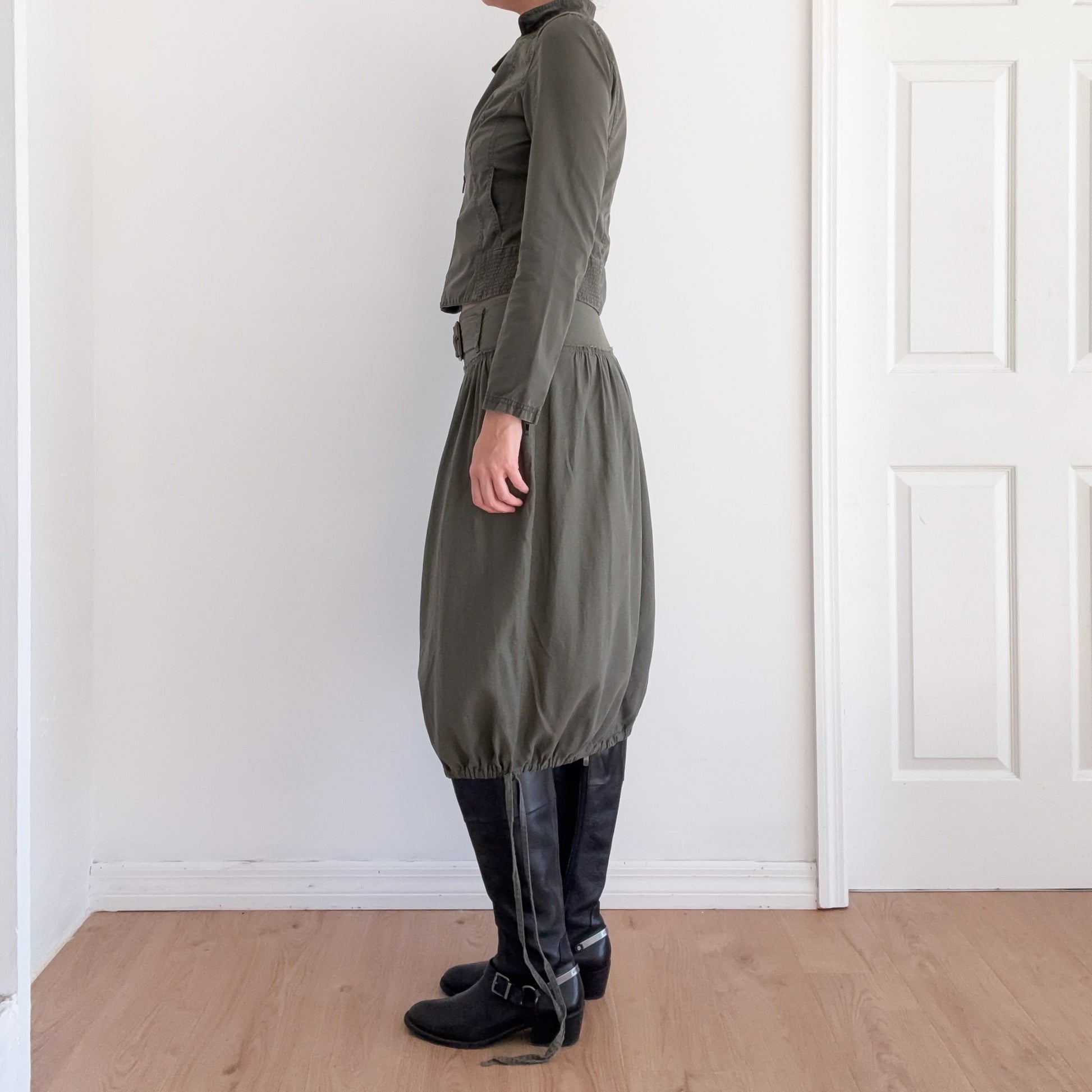 Y2K Army Green Cotton Bubble Midi Skirt / SZ S/M