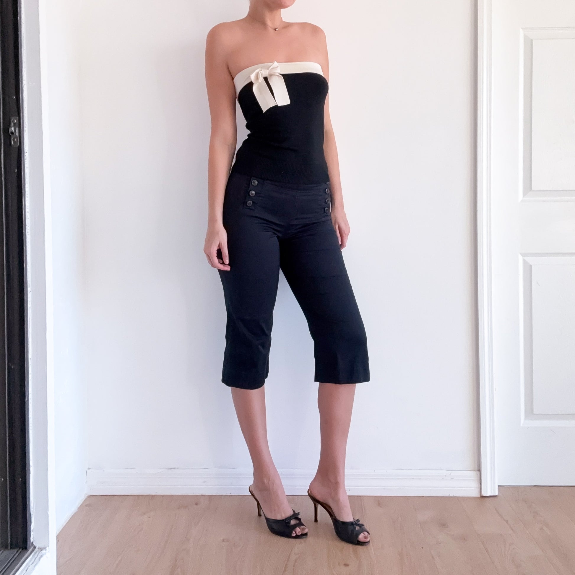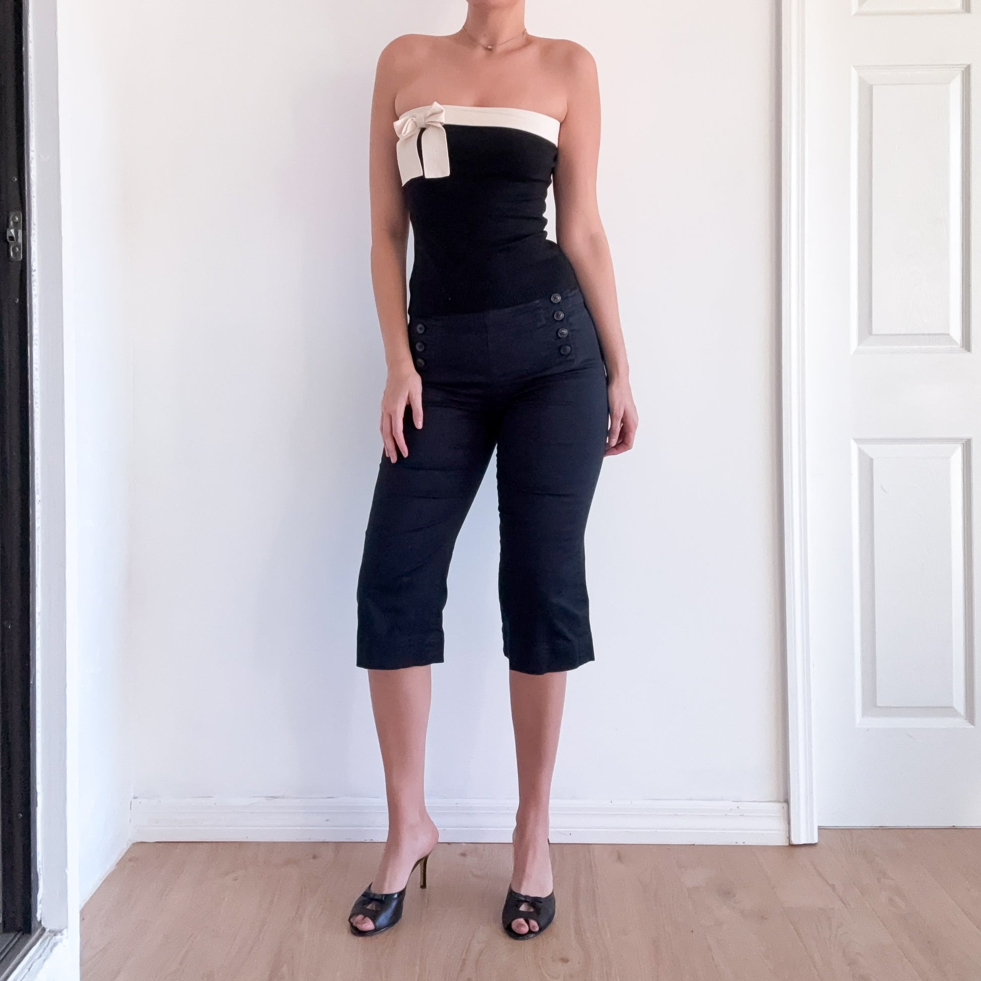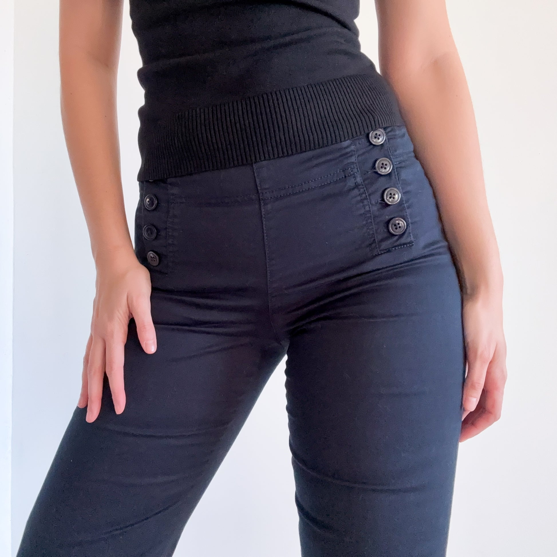 Y2K Black Cotton Button Capri's / SZ 4/6