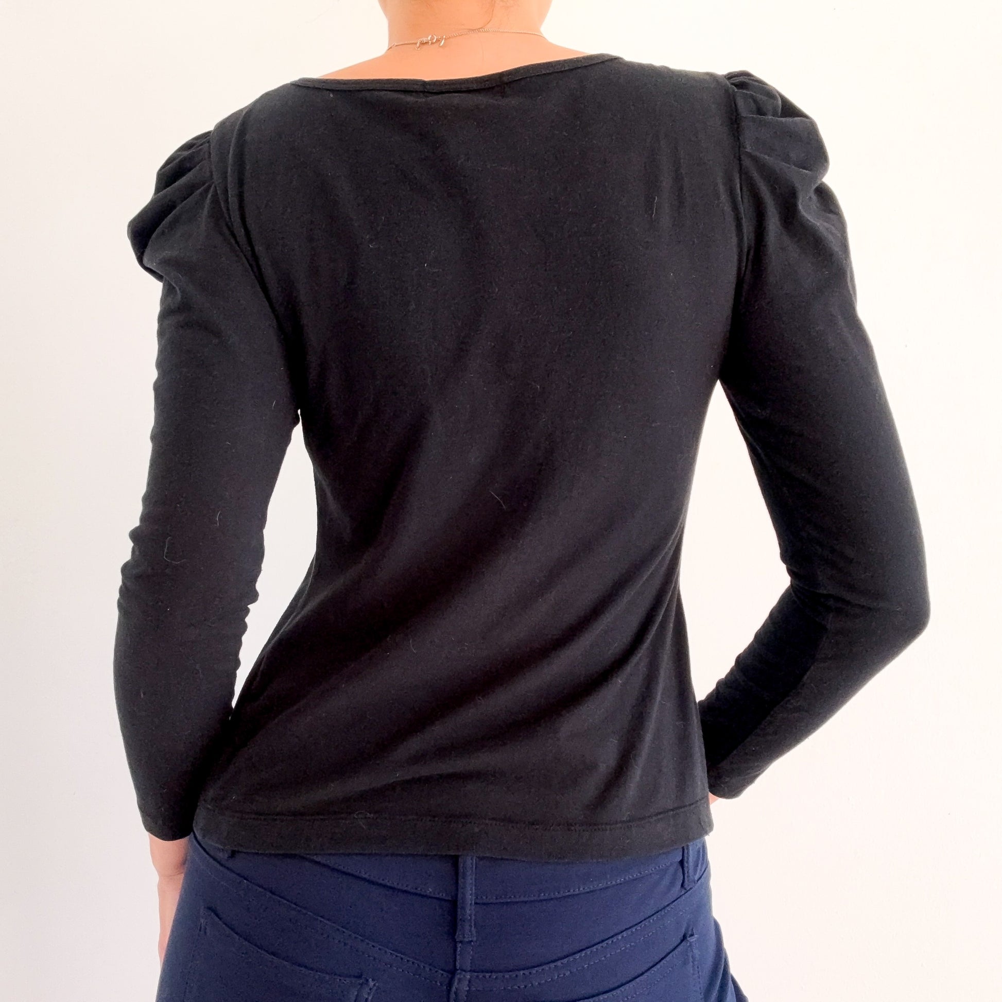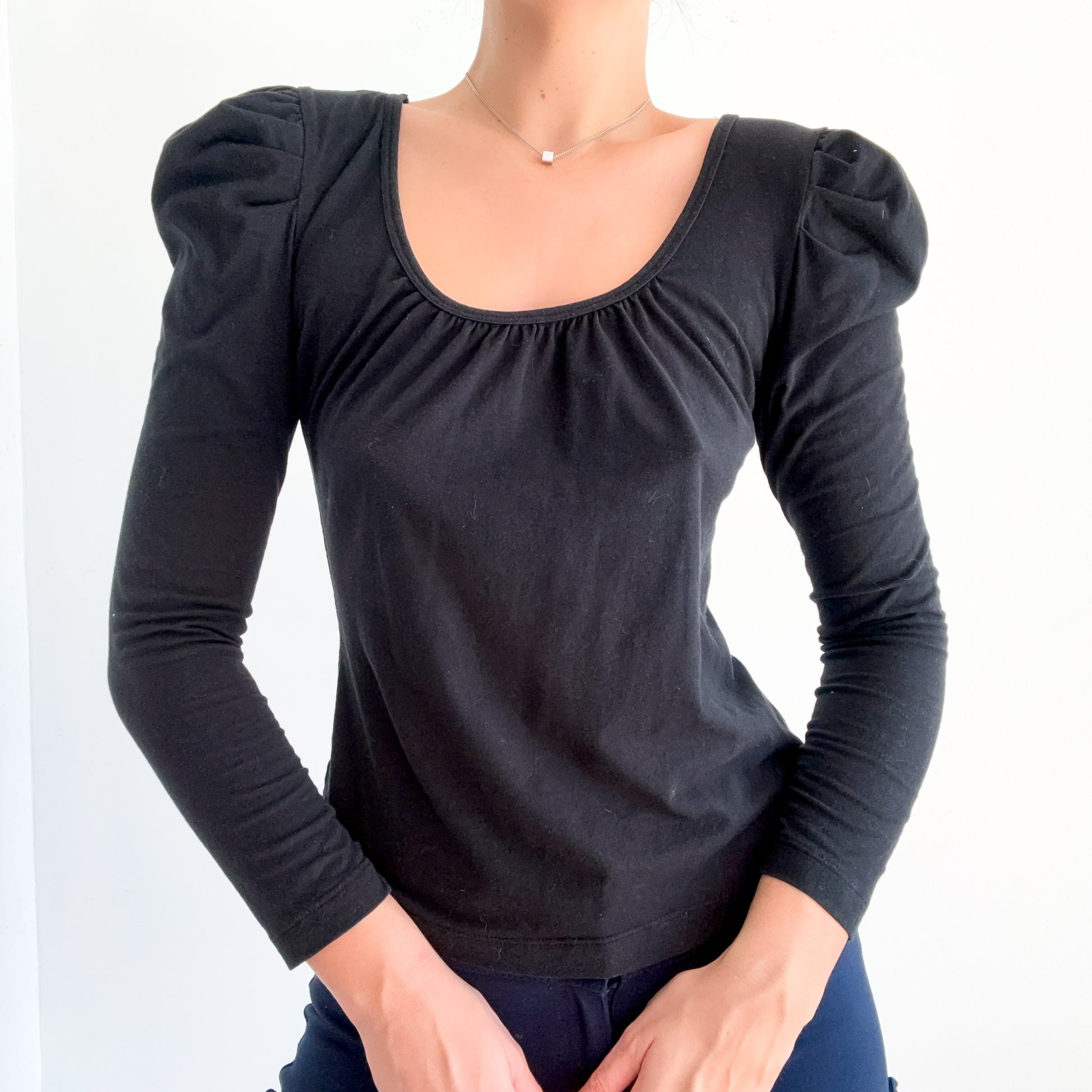 Y2K Black Cotton Puff Sleeve Long Sleeve / SZ M-L