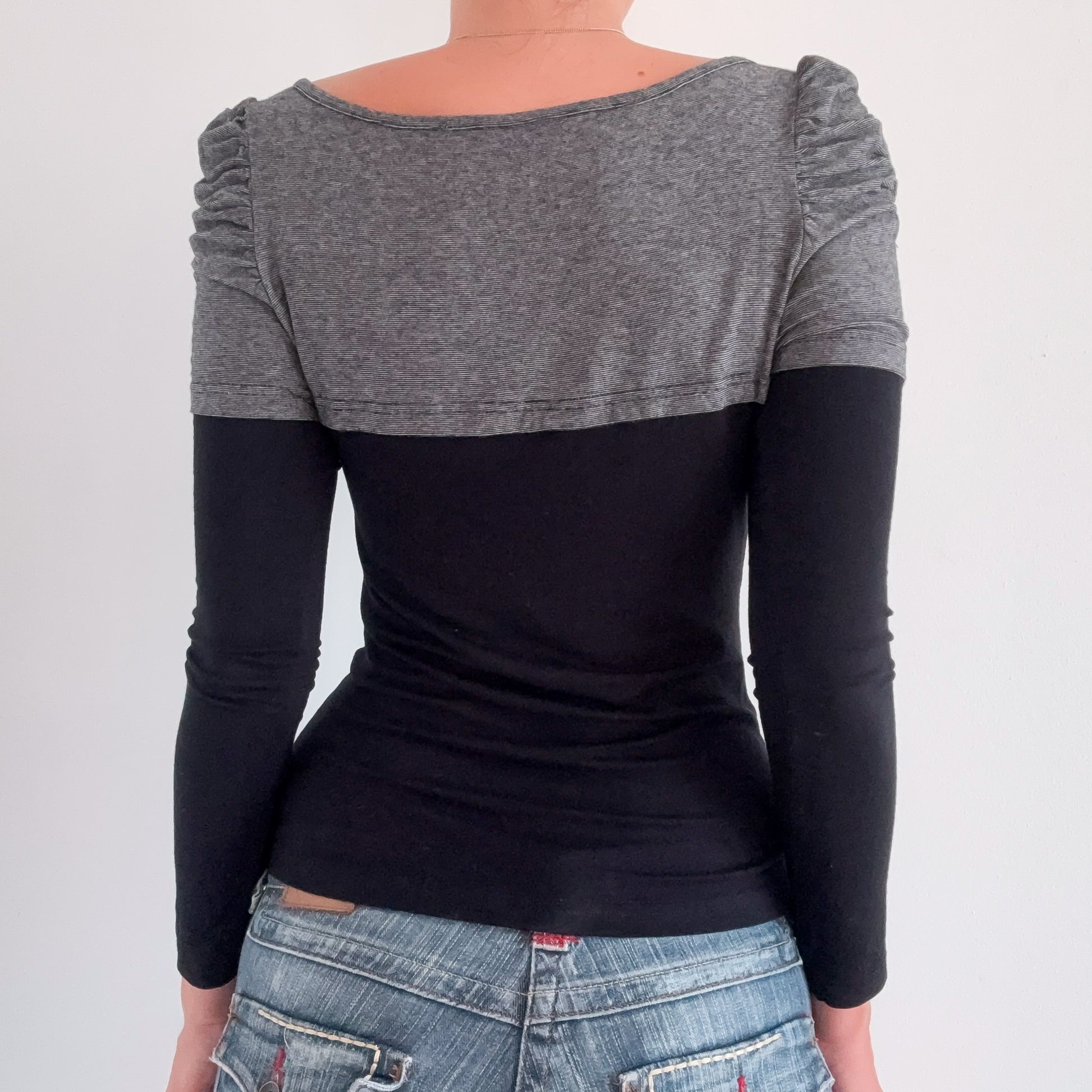 Y2K Black & Grey Puff Sleeve Layered Top / SZ S