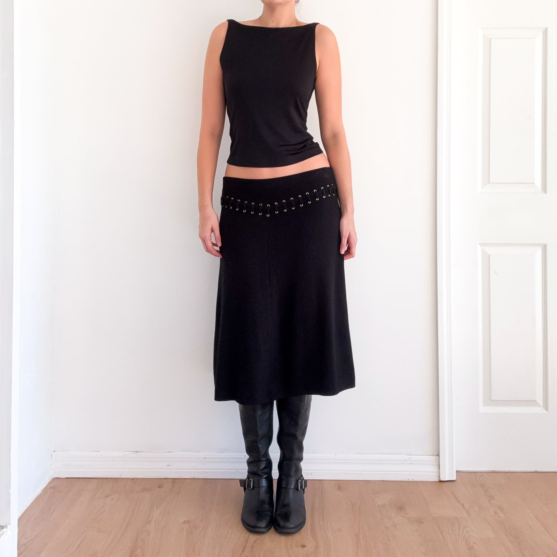 Y2K Black Knit Lace Up Midi Skirt / SZ M-L