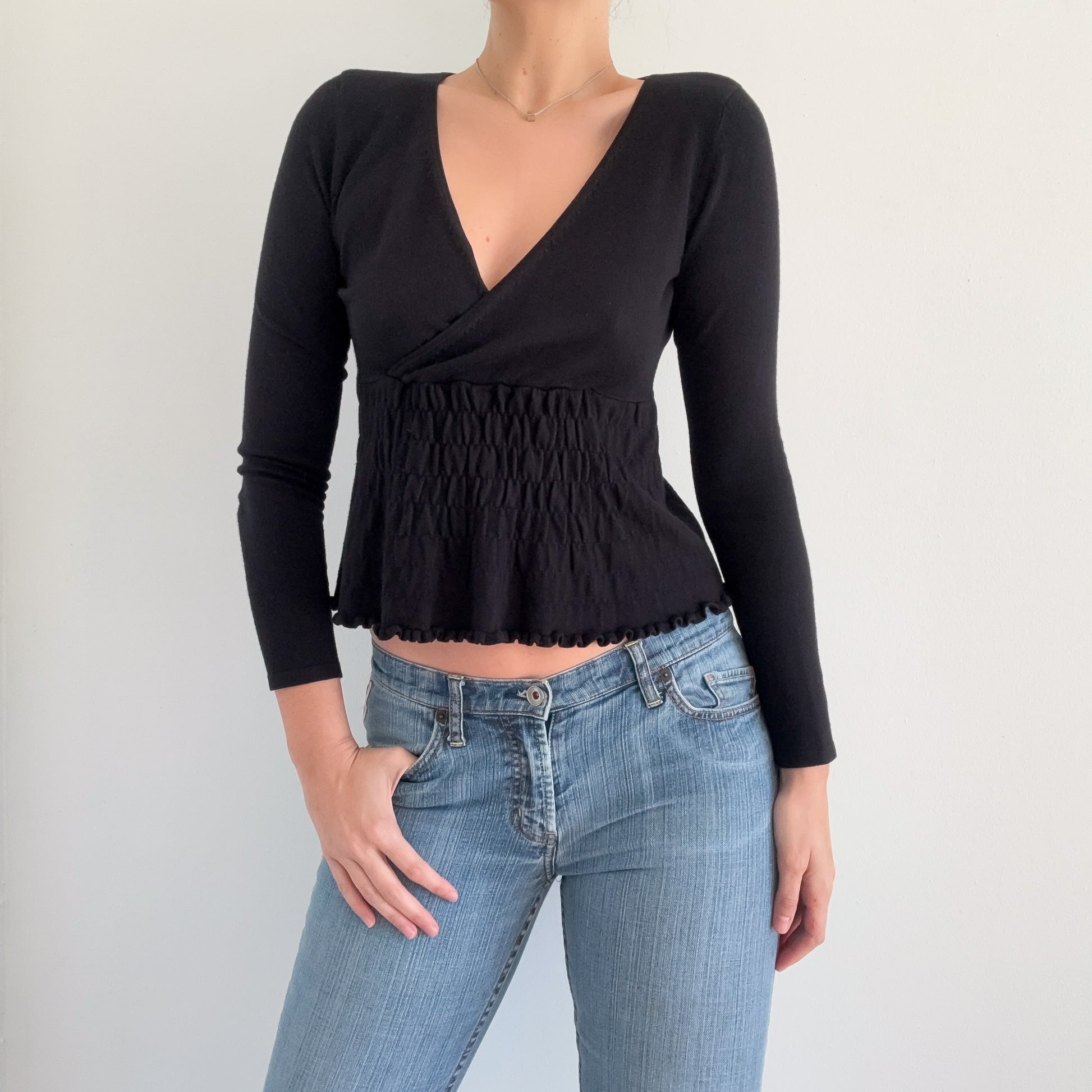 Y2K Black Knit Smocked Babydoll Top / SZ S