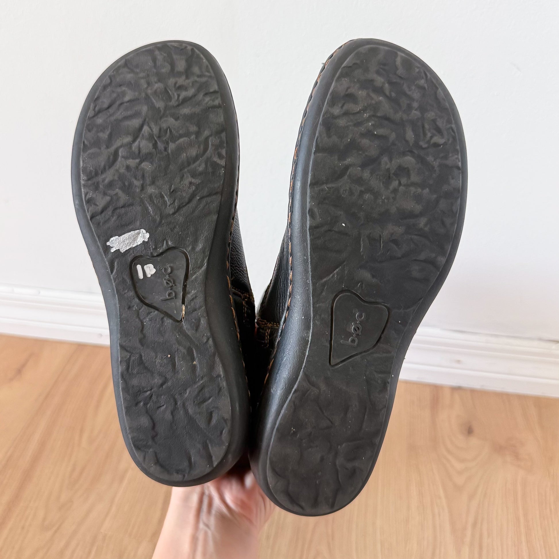 leather upper--balance man made material--Y2K "B.O.C."--inside zipper closure--buckle detail--round toe--in great condition