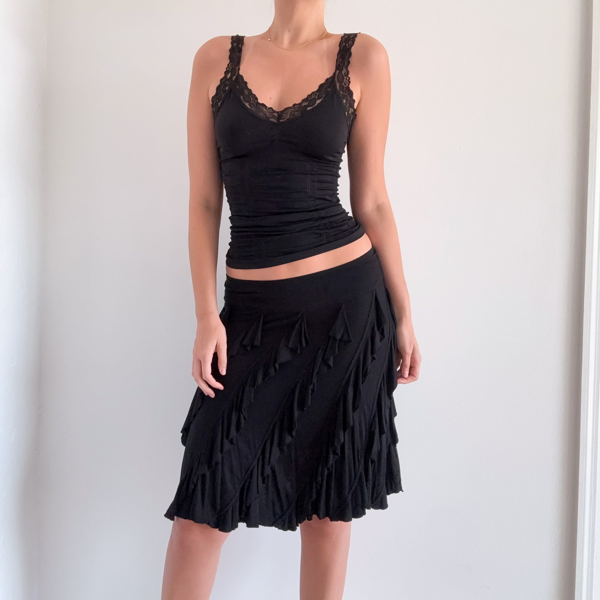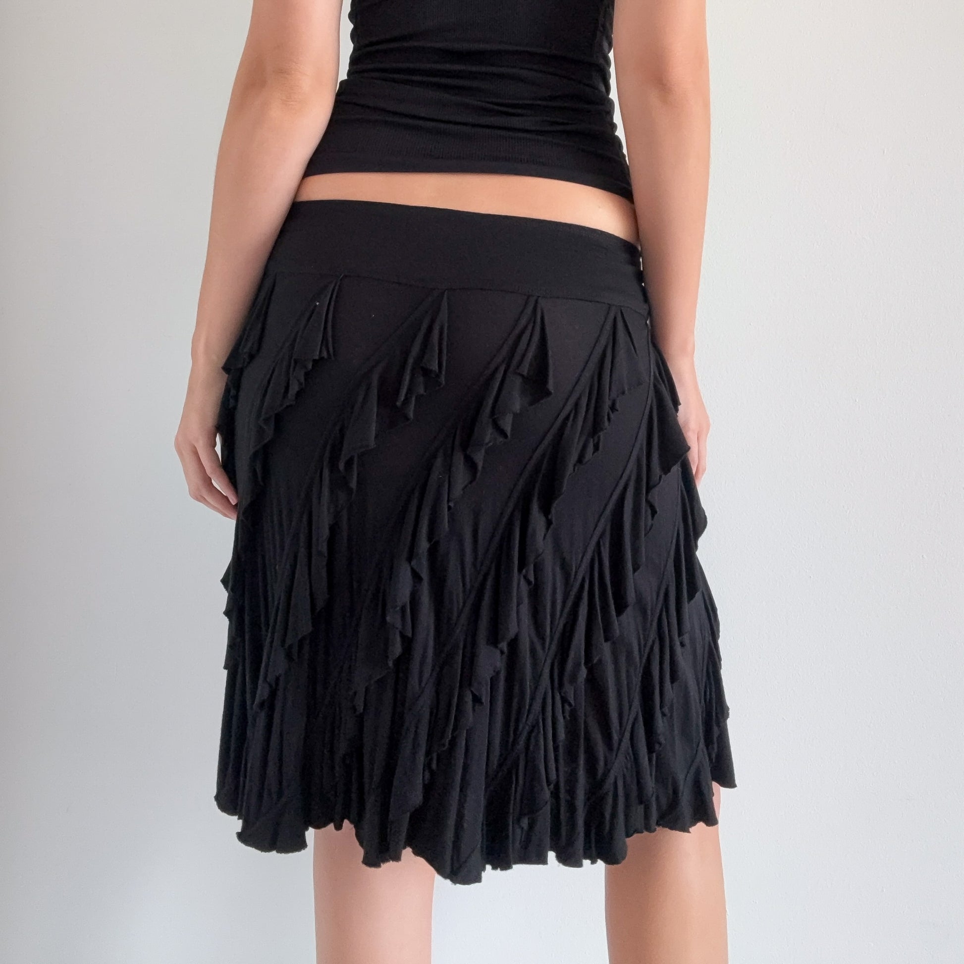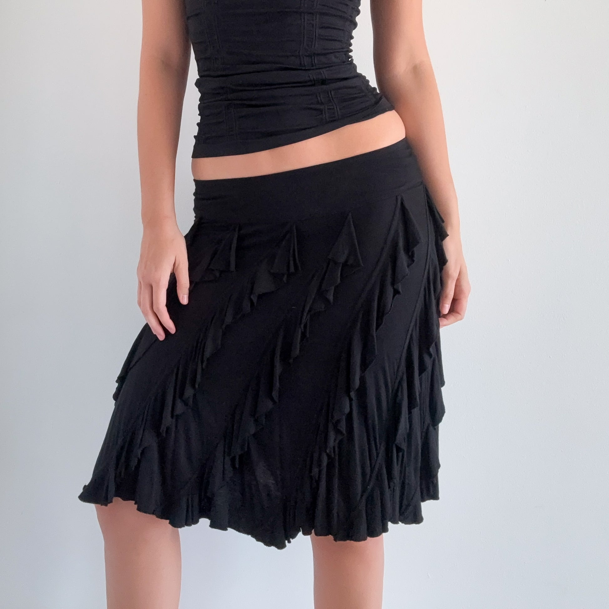 Y2K Black Modal Ruffle Midi Skirt / SZ S-M