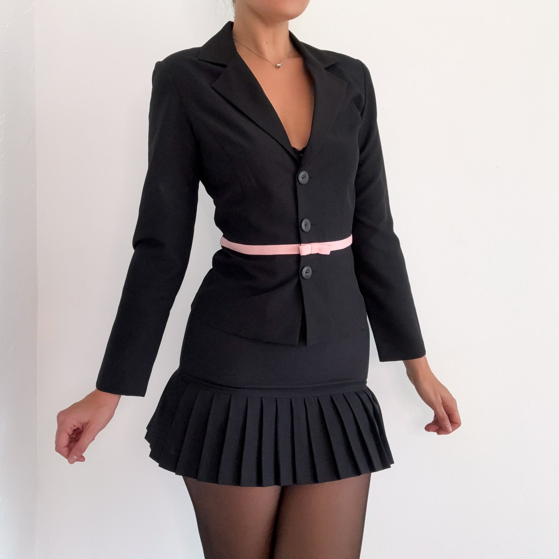 Y2K Black & Pink Bow Skirt Suit Set / SZ 2/4