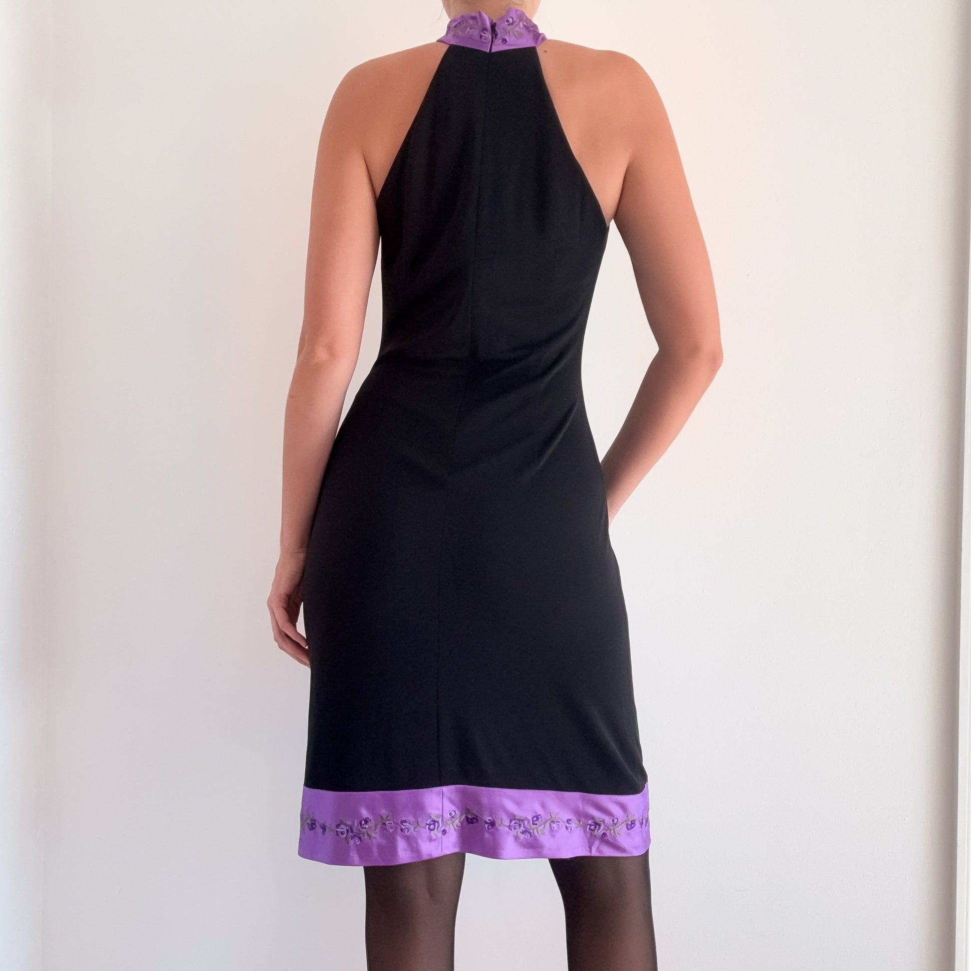 90's Black & Purple Embroidered Midi Dress / SZ 6-8