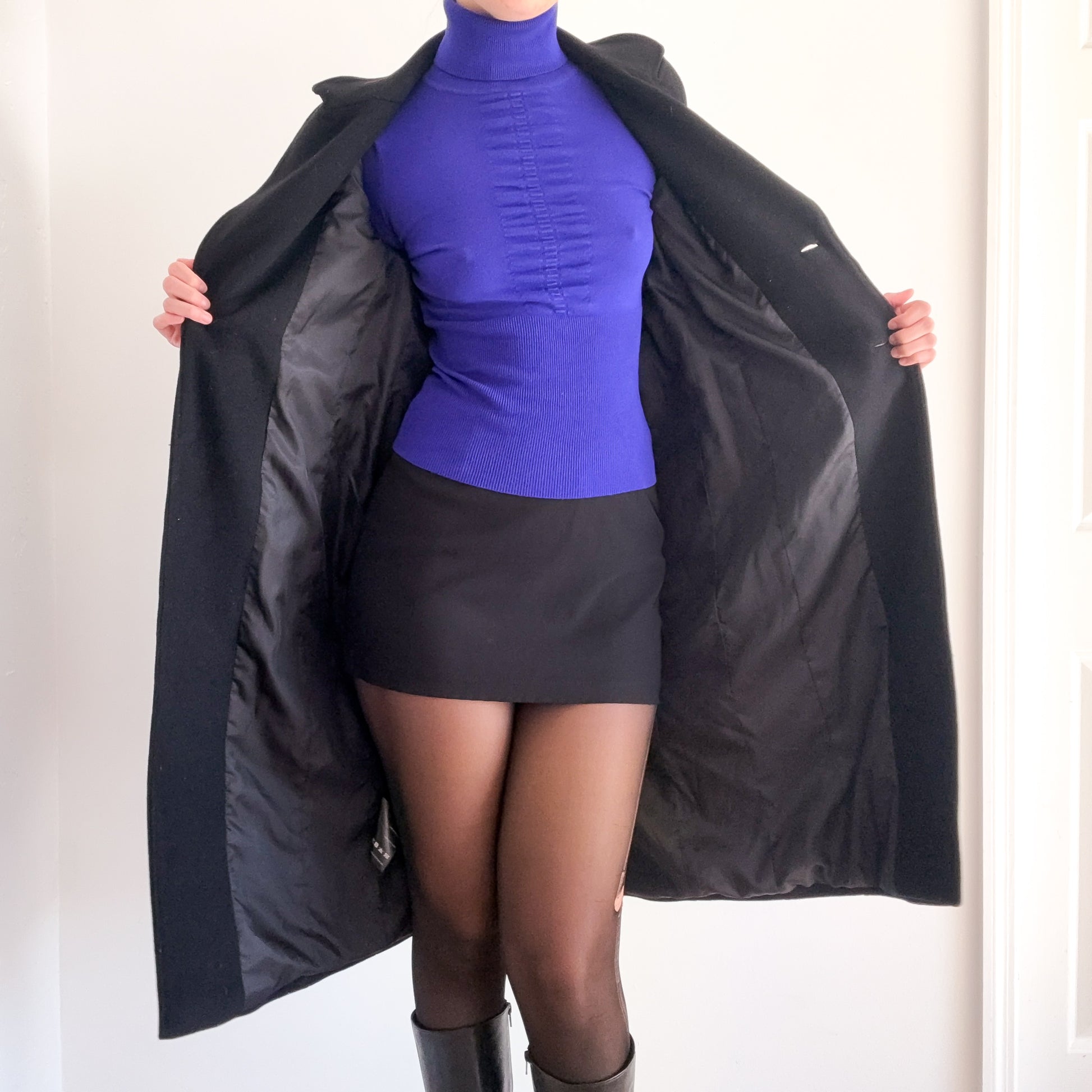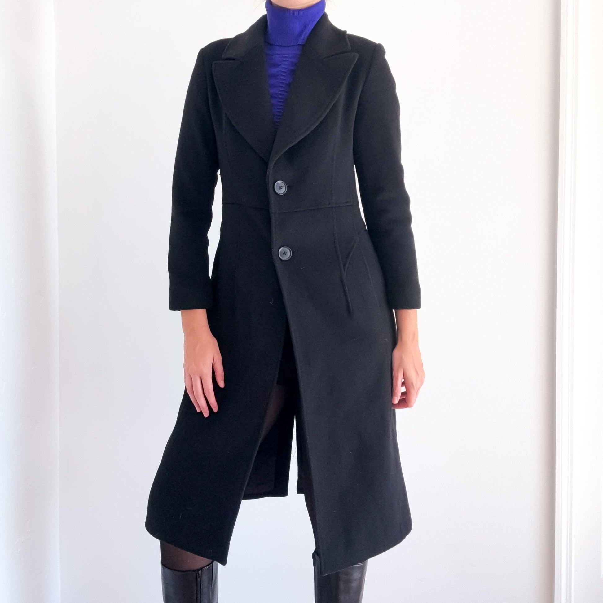 Contemporary Black Wool Overcoat / SZ XS-S