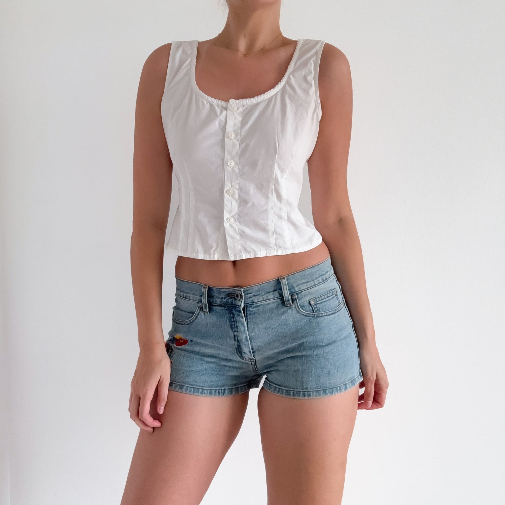 Y2K Blue Embroidered Denim Shorts / SZ 6
