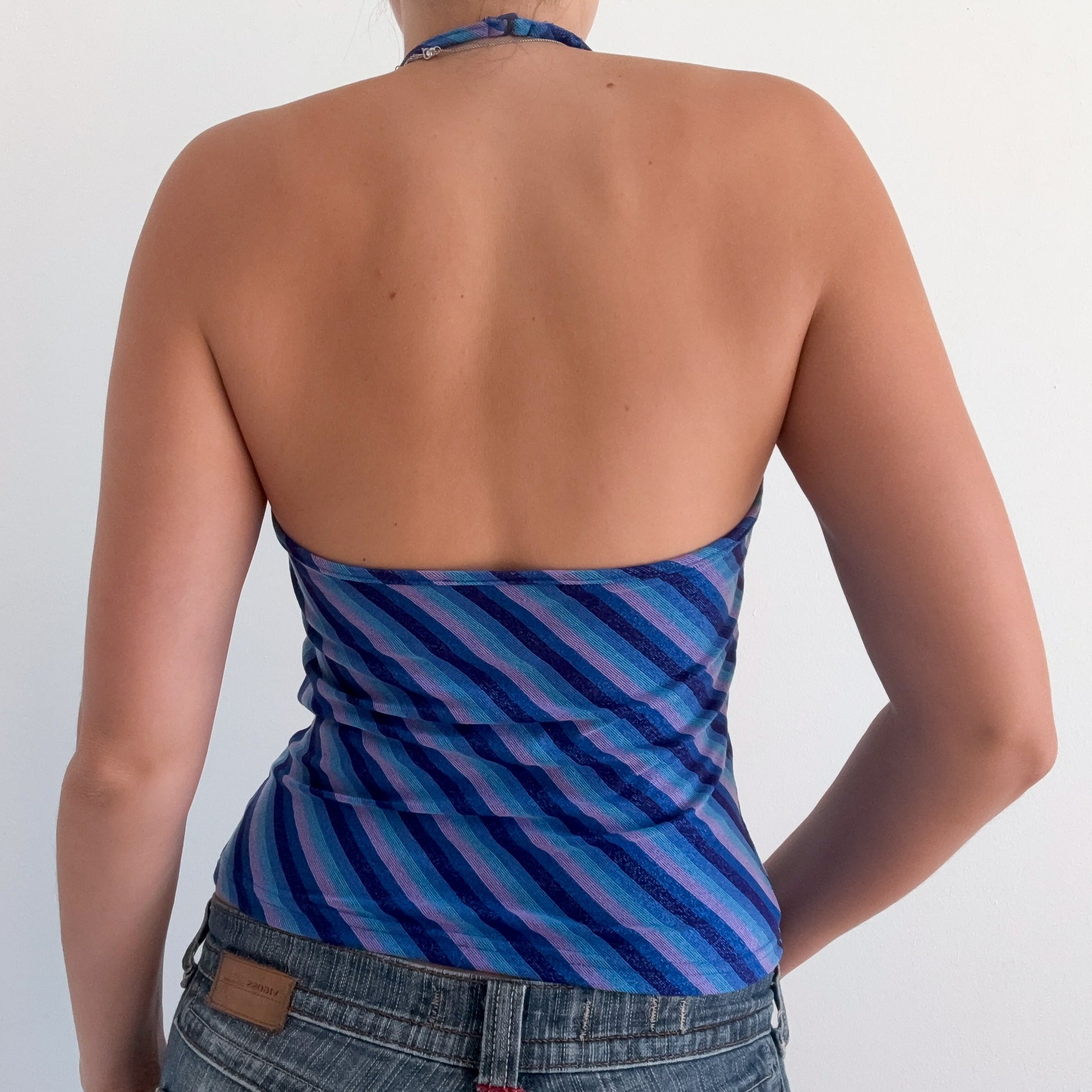 Y2K Blue & Pink Sparkle Striped Halter Top / SZ M