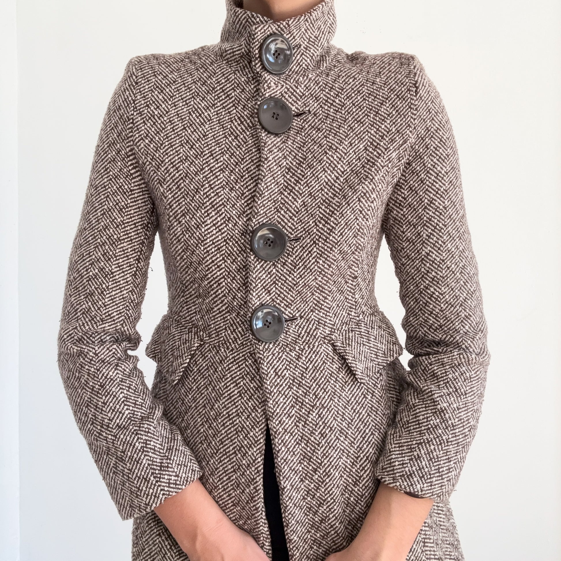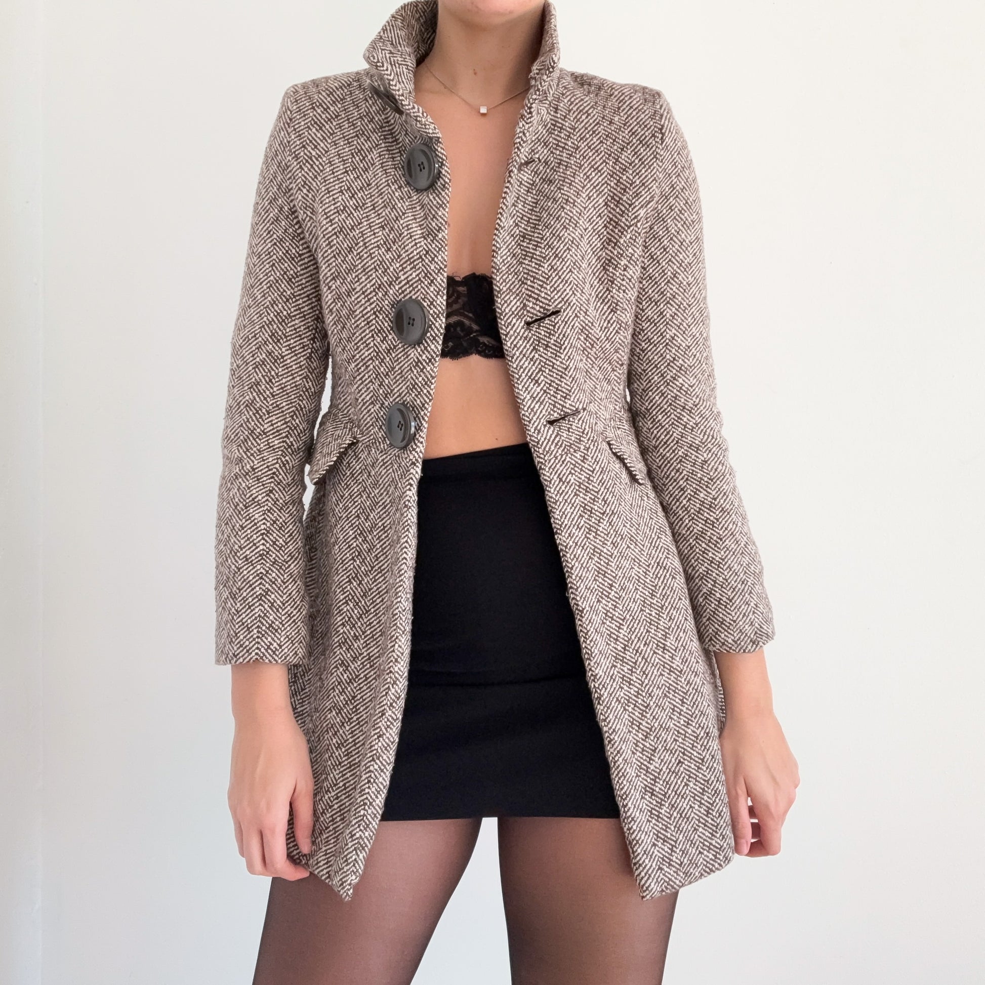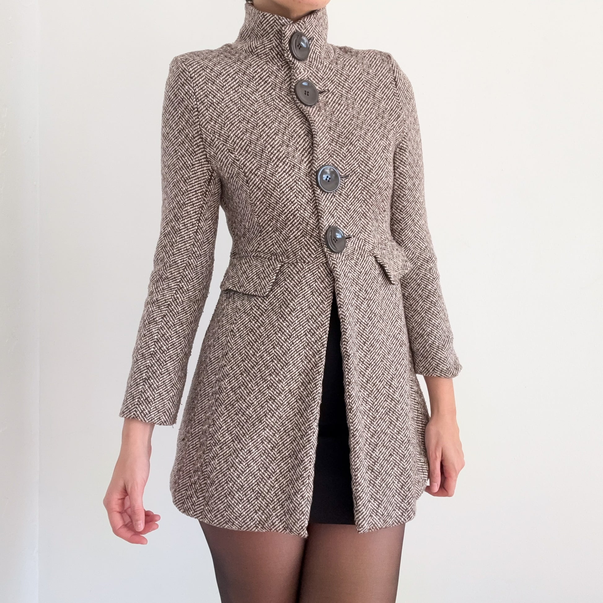 Y2K Brown Houndstooth Tweed Coat / SZ S