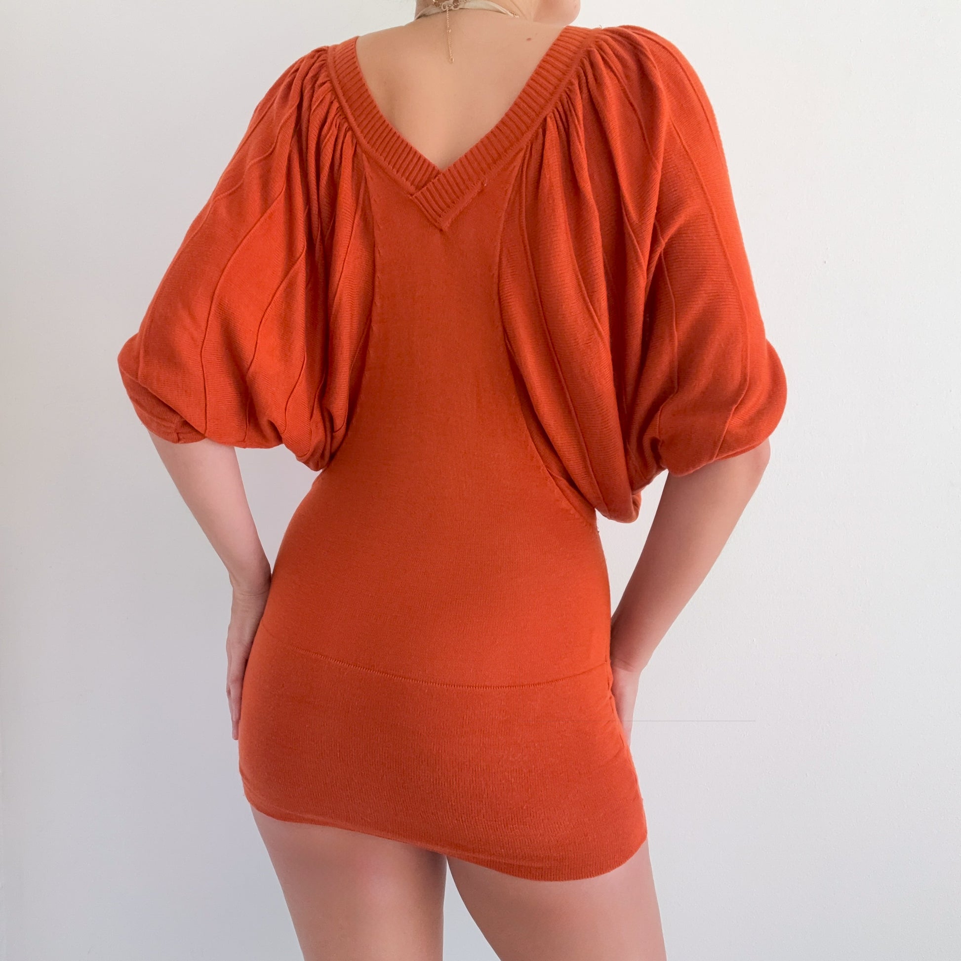 Y2K Burnt Orange Knit Mini Dress / SZ S