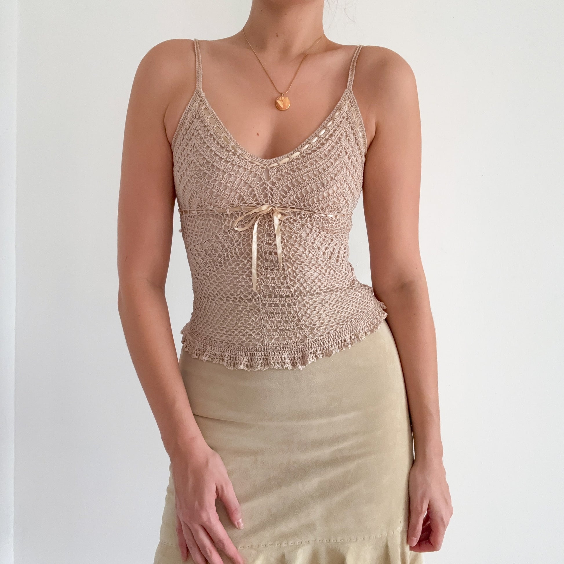 Y2K Champagne Crochet Bow Tank / SZ XS-S