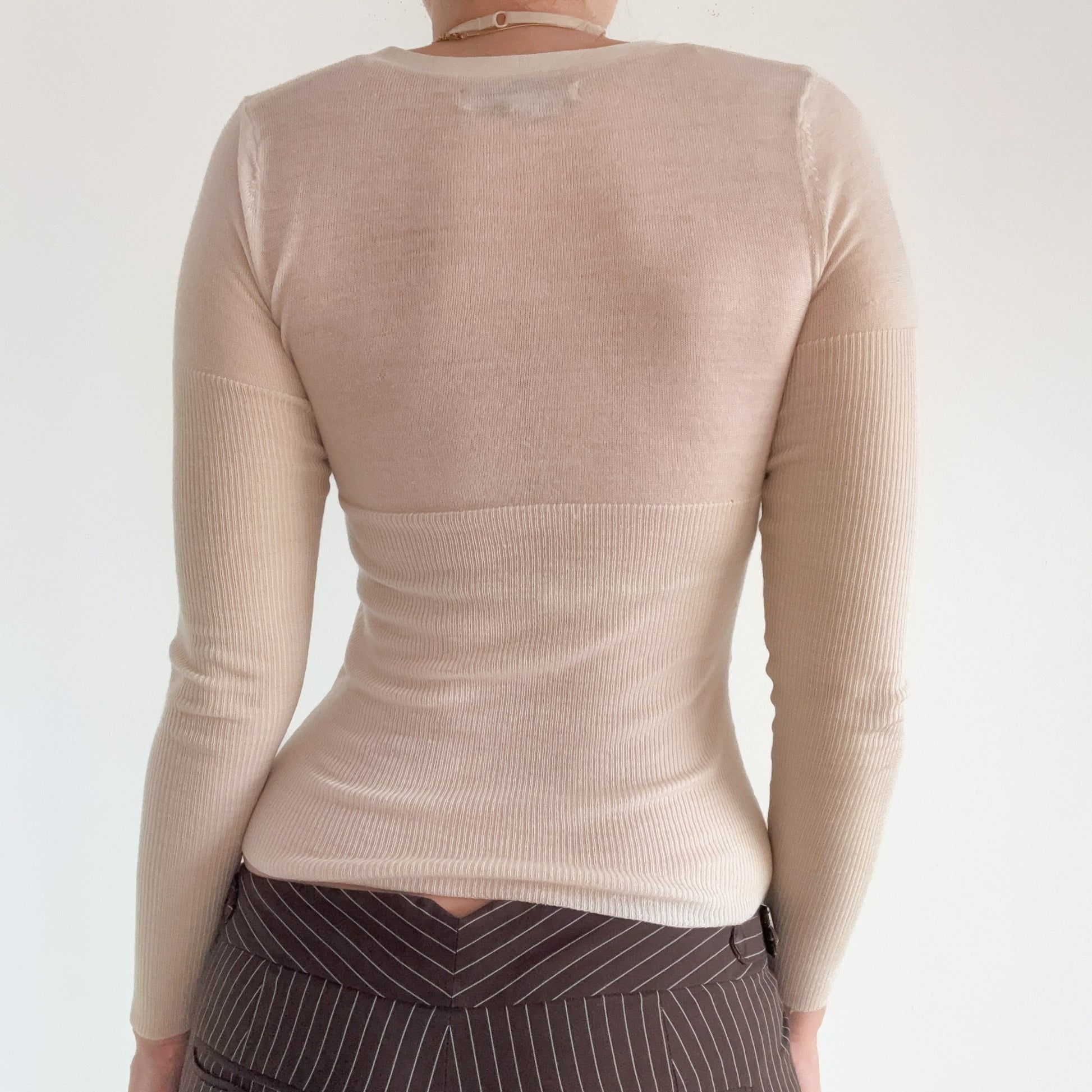 Y2K Cream Knit Fitted Cardigan / SZ XS-S