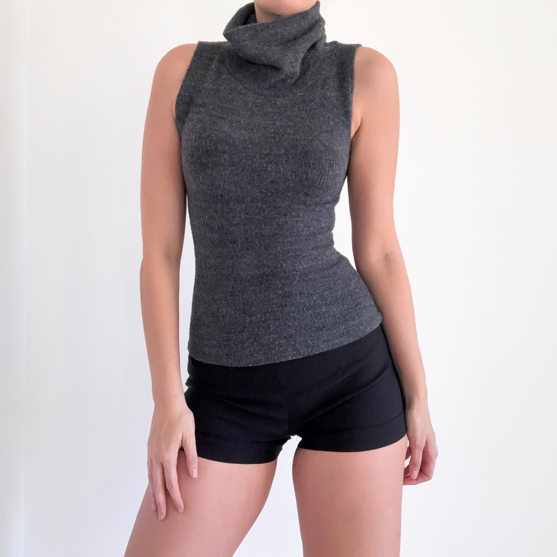 Y2K Dark Grey Knit Sleeveless Turtleneck / SZ S-M