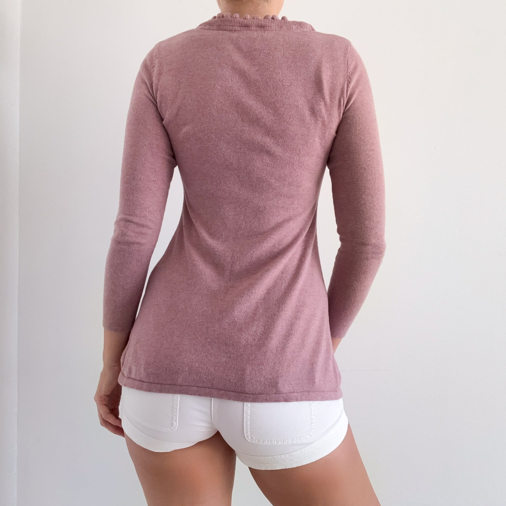 Y2K Dusty Mauve Knit Tie Cardigan / SZ XS-S