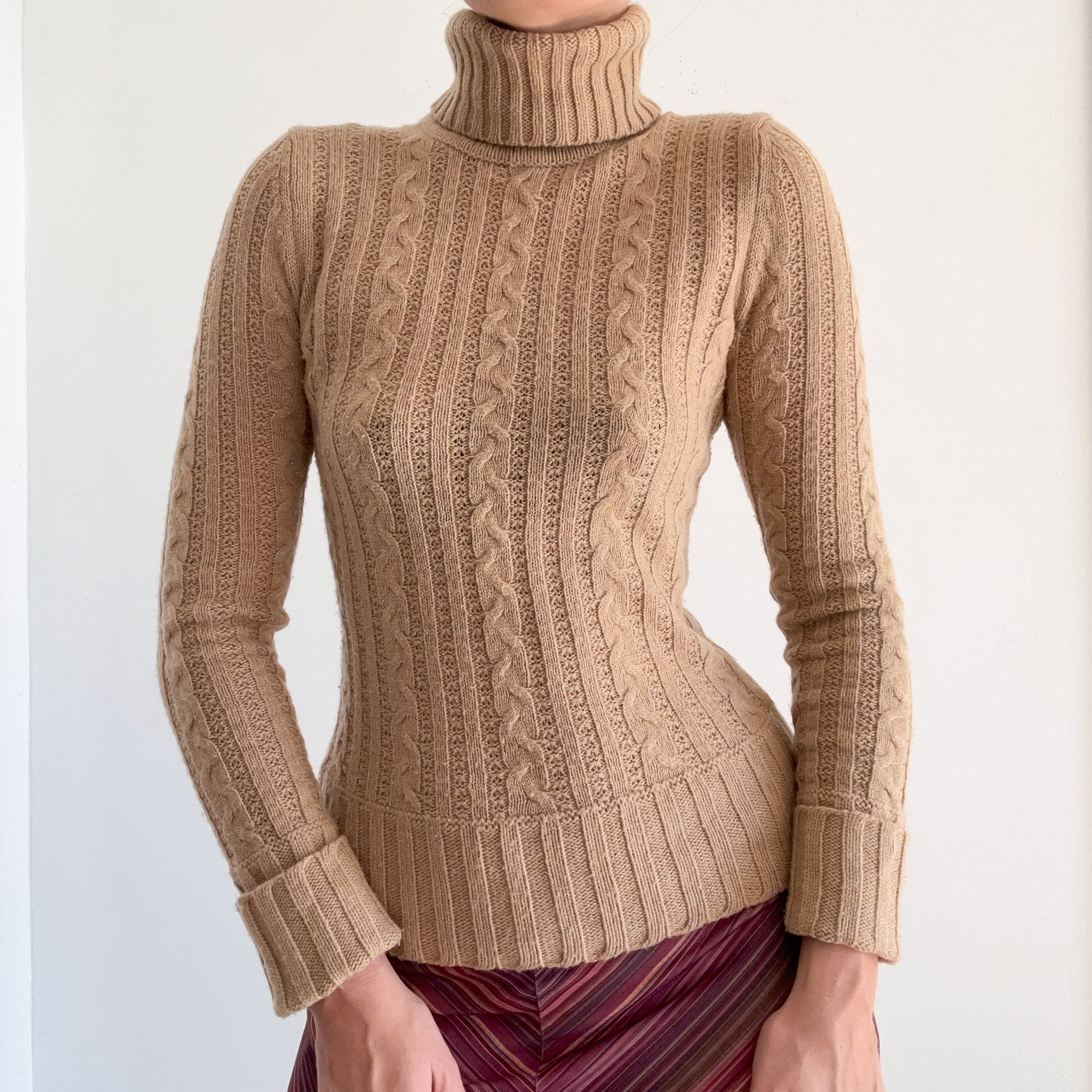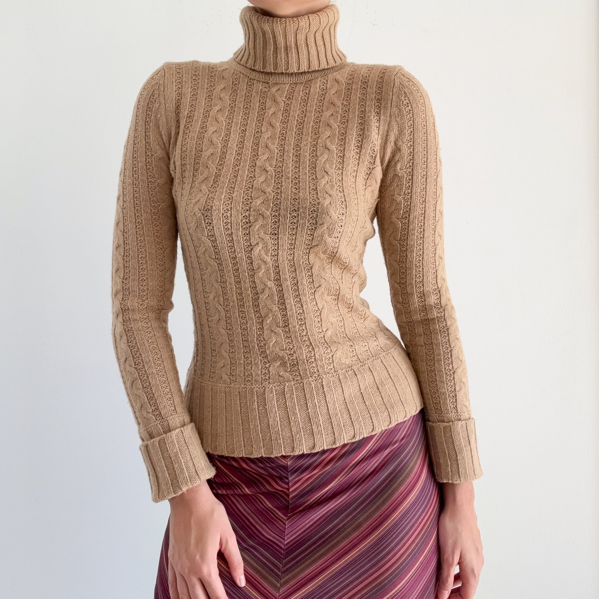 Y2K Express Camel Sparkle Knit Turtleneck / SZ S