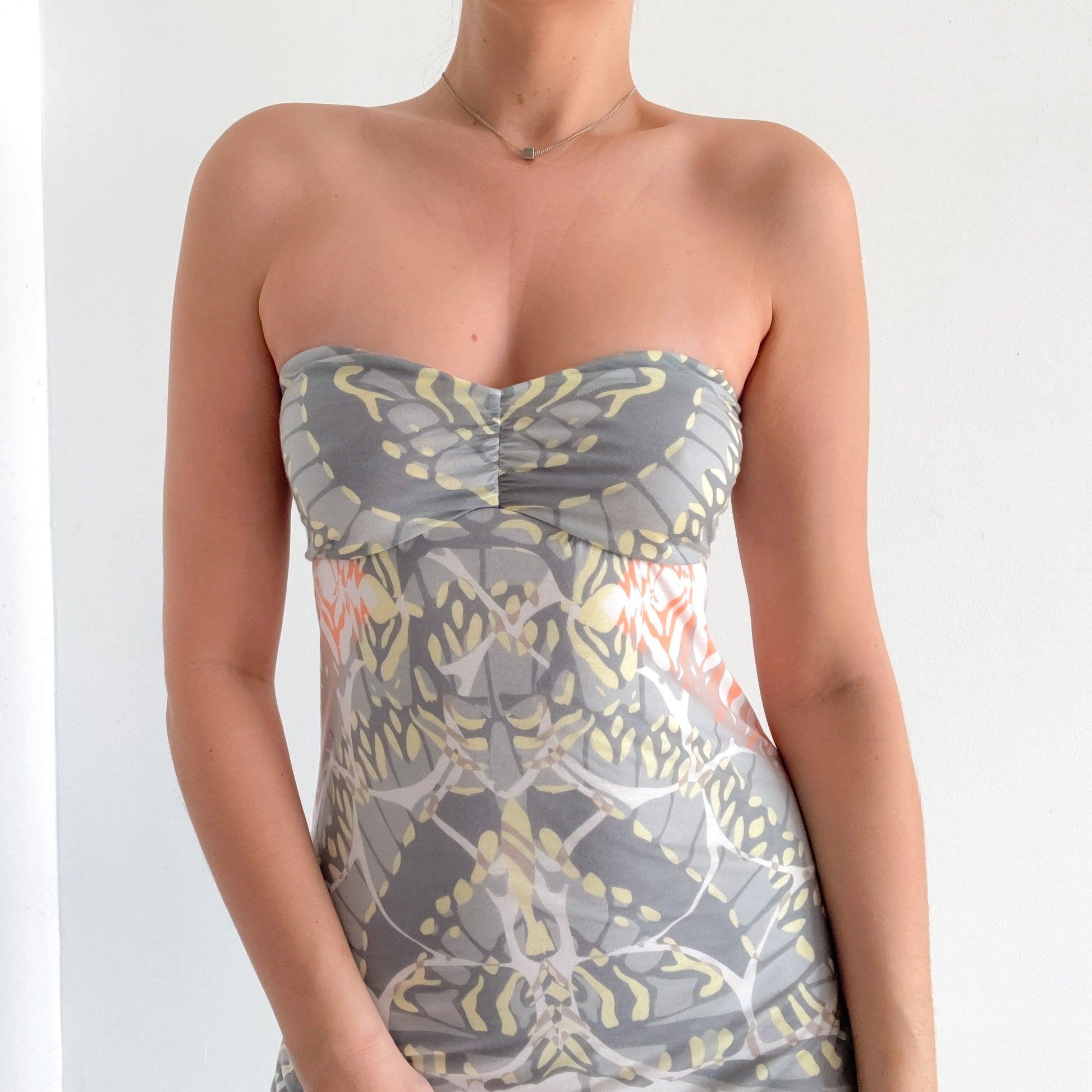 Y2K Free People Grey Printed Tube Dress / SZ S