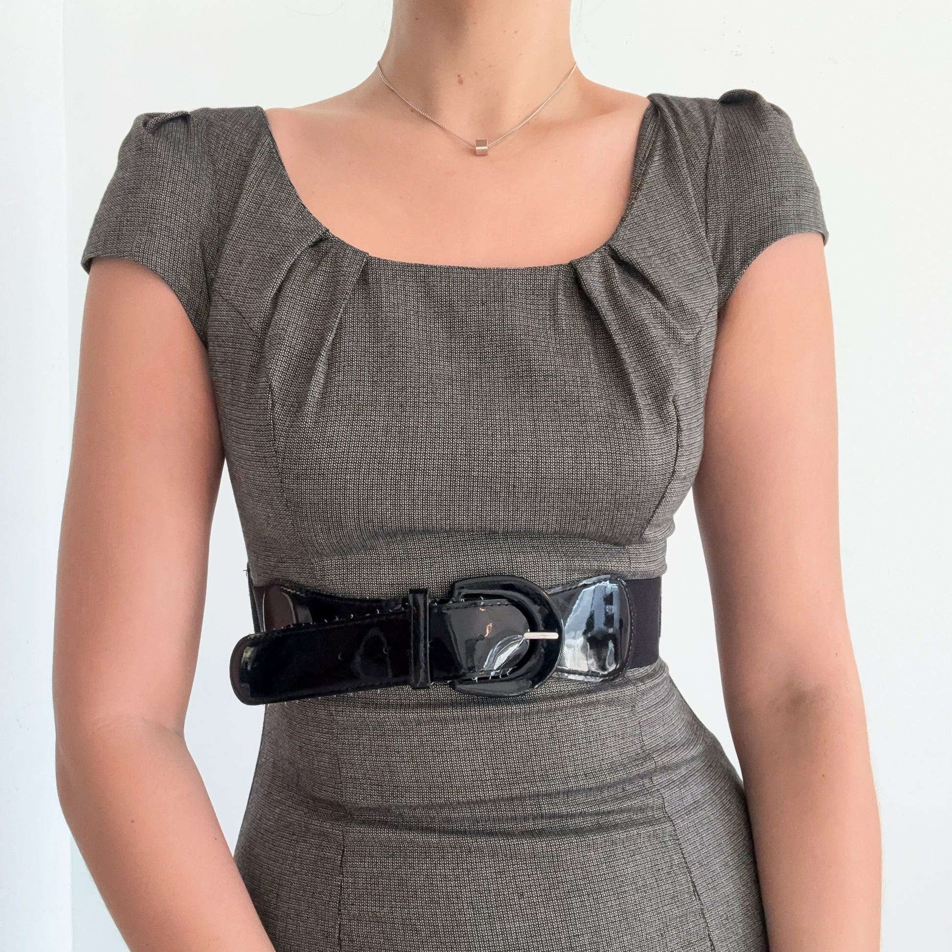 Y2K Grey Belted Office Mini Dress / SZ 2