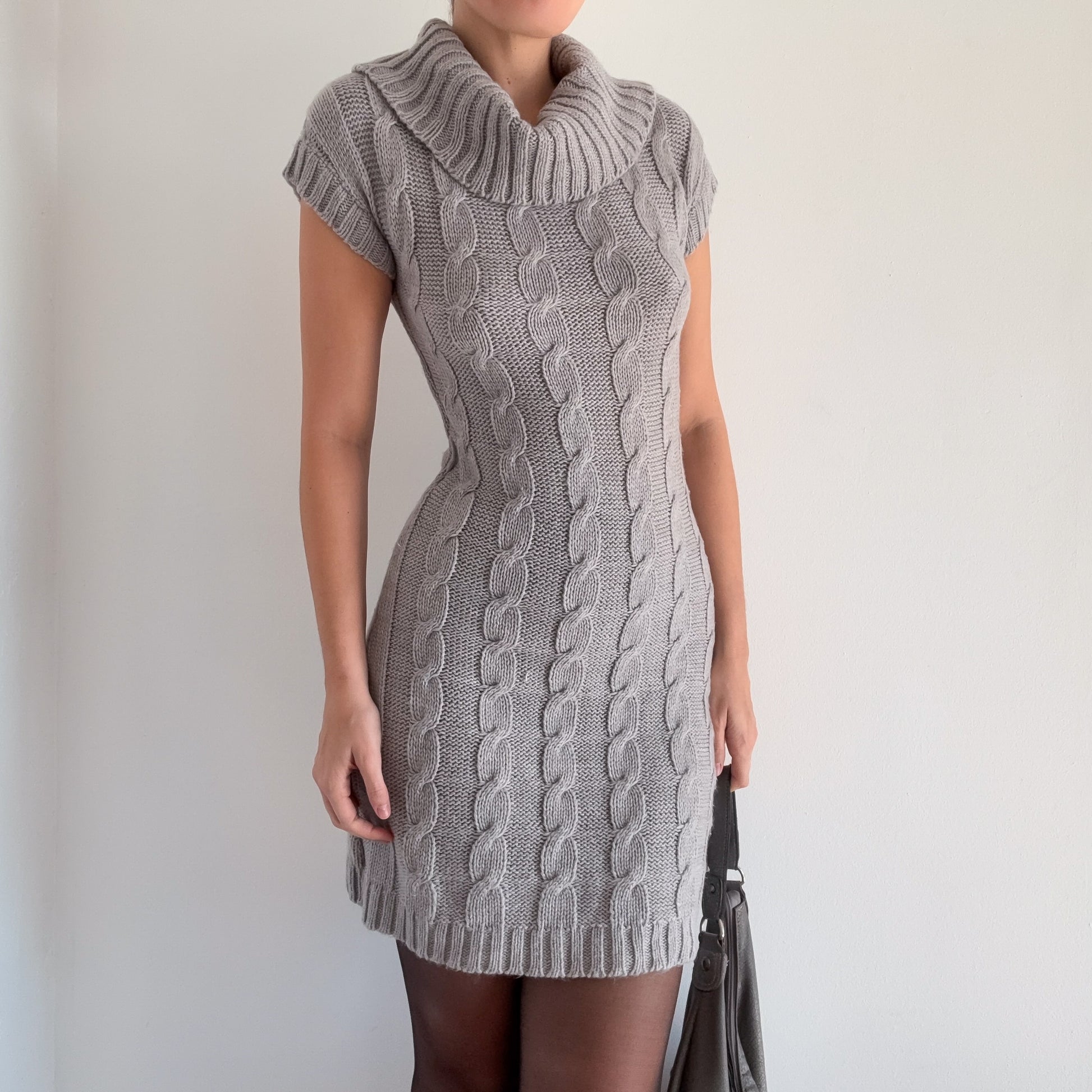 Y2K Grey Cable Knit Sweater Dress / SZ M