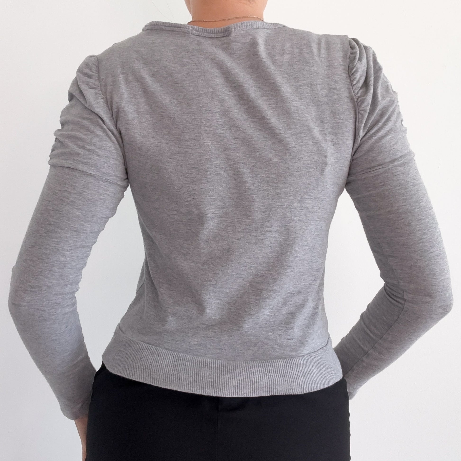 Y2K Grey Cotton Puff Sleeve Cardigan / SZ S/M