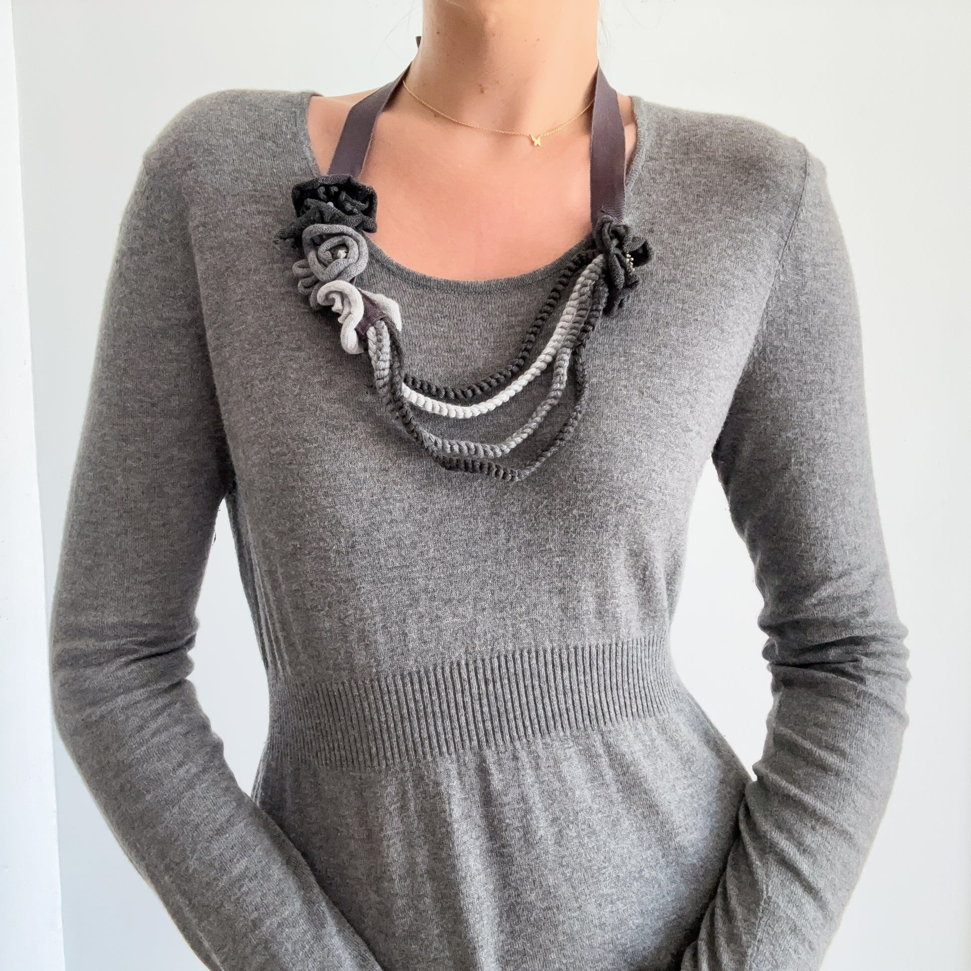 Y2K Grey Knit Rosette Babydoll Mini Dress / SZ M