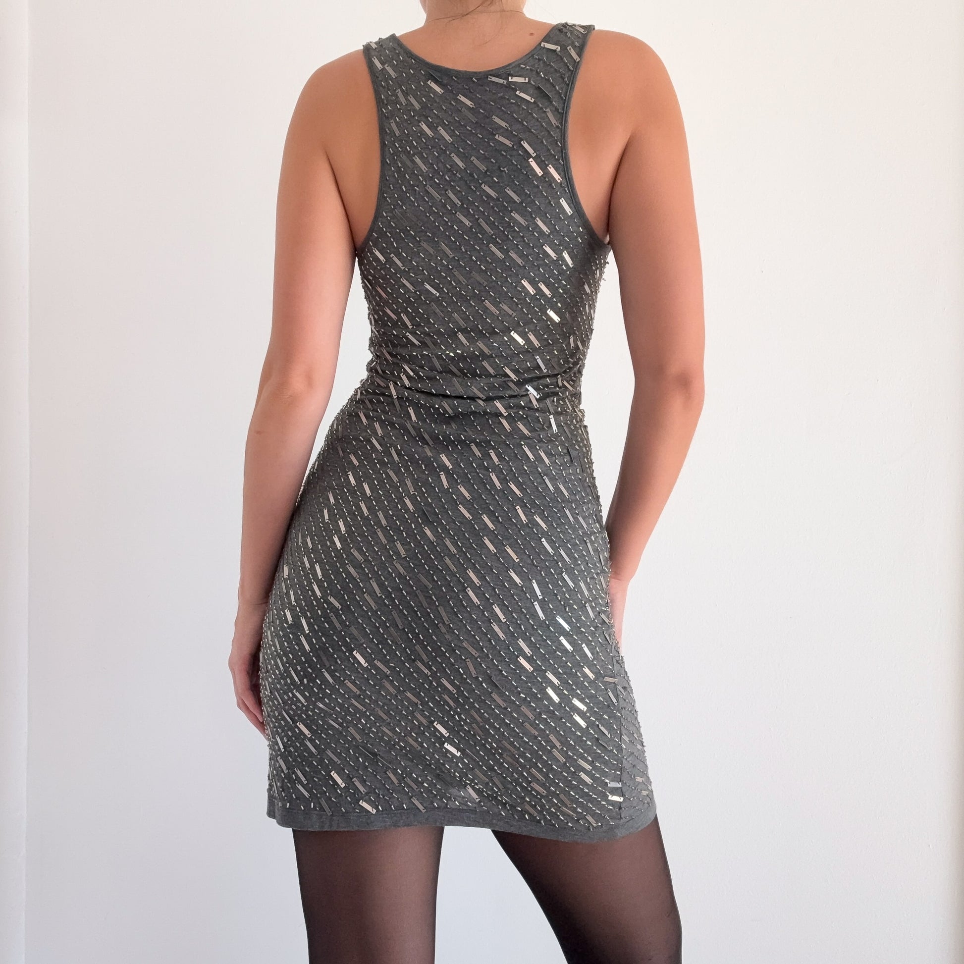 Y2K Grey Modal Beaded Mini Dress / SZ S-M
