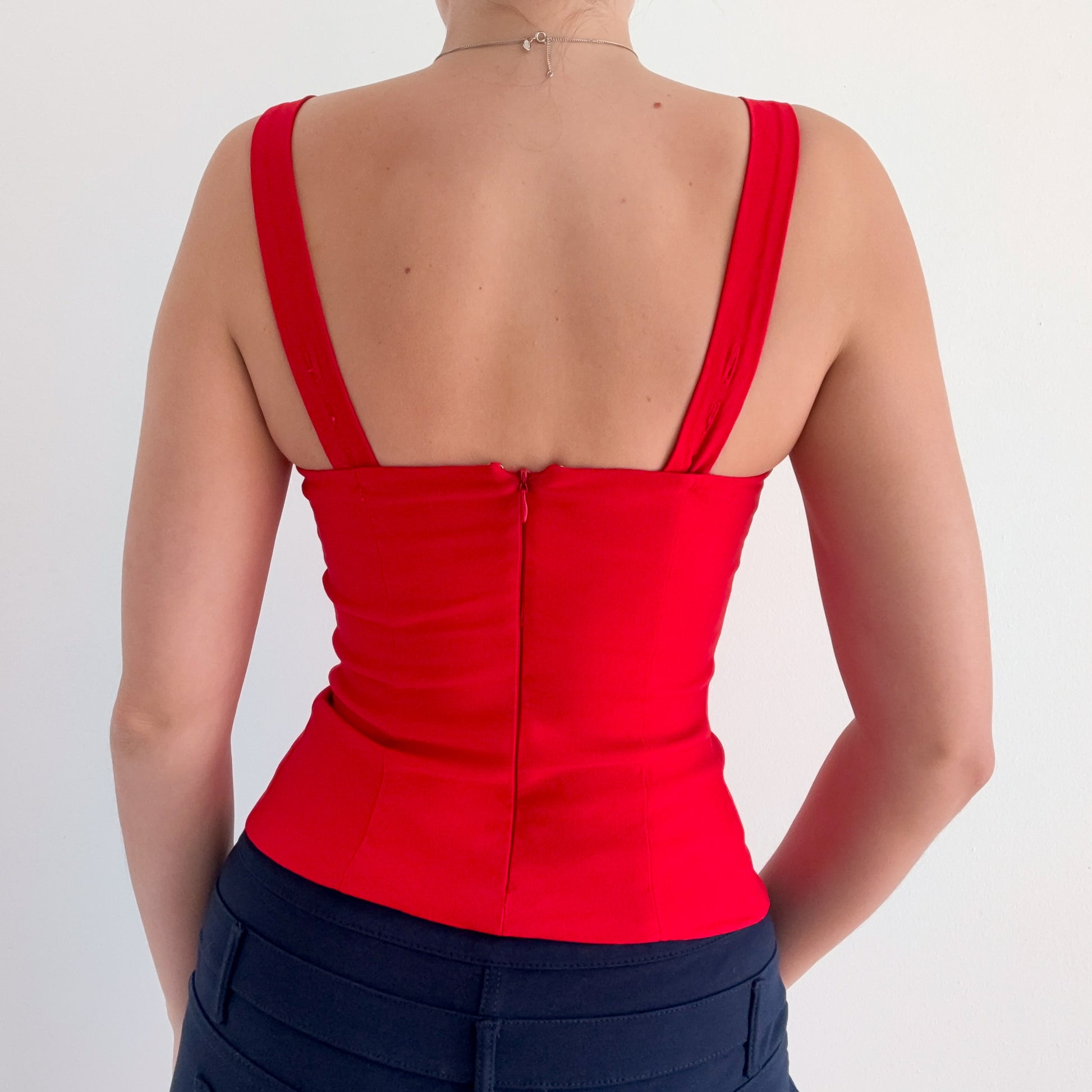 rayon nylon blend--has a little stretch--Y2K Guess--back zipper closure--adjustable straps--underwire with slight padding