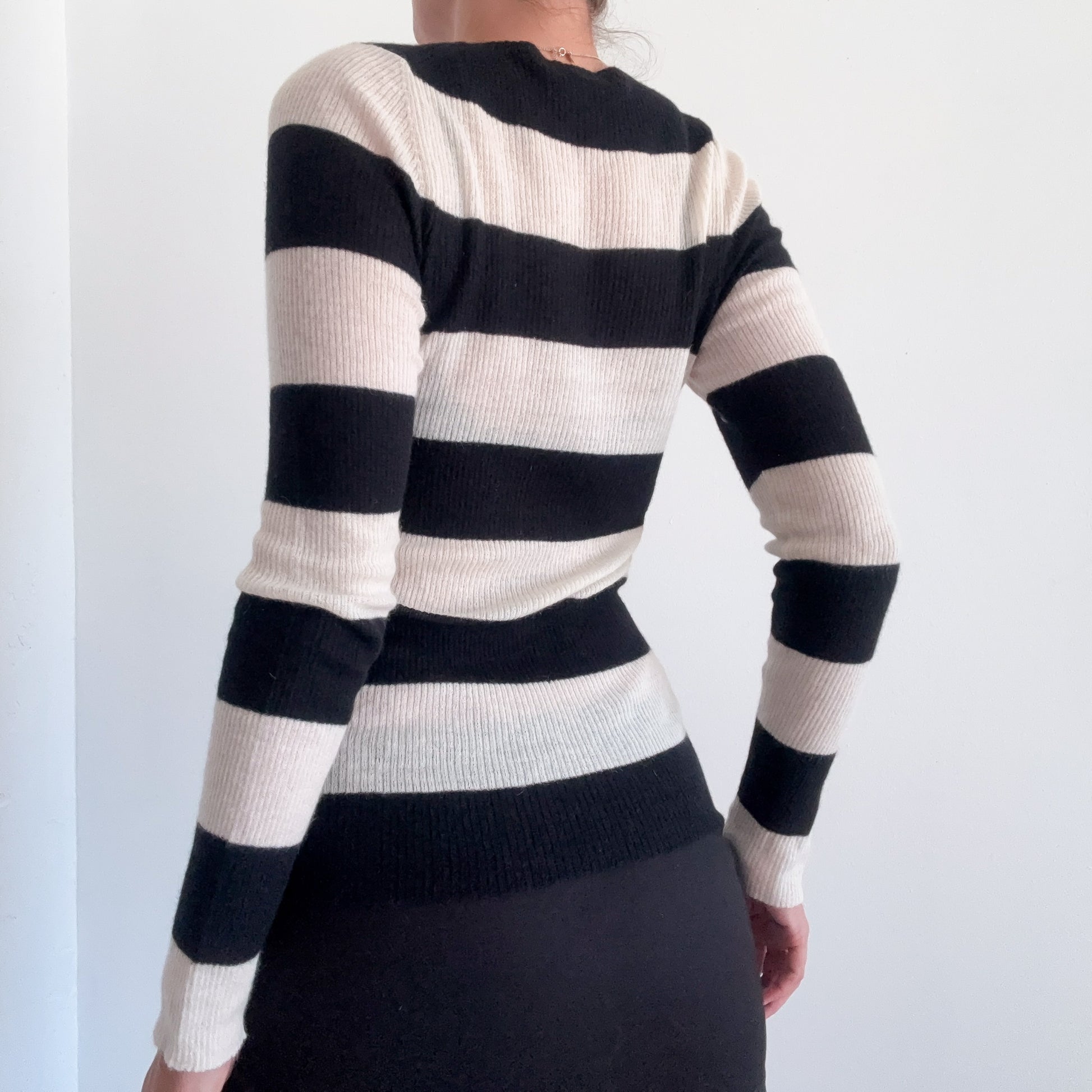 Y2K Ivory & Black Mohair Blend Knit Top / SZ M