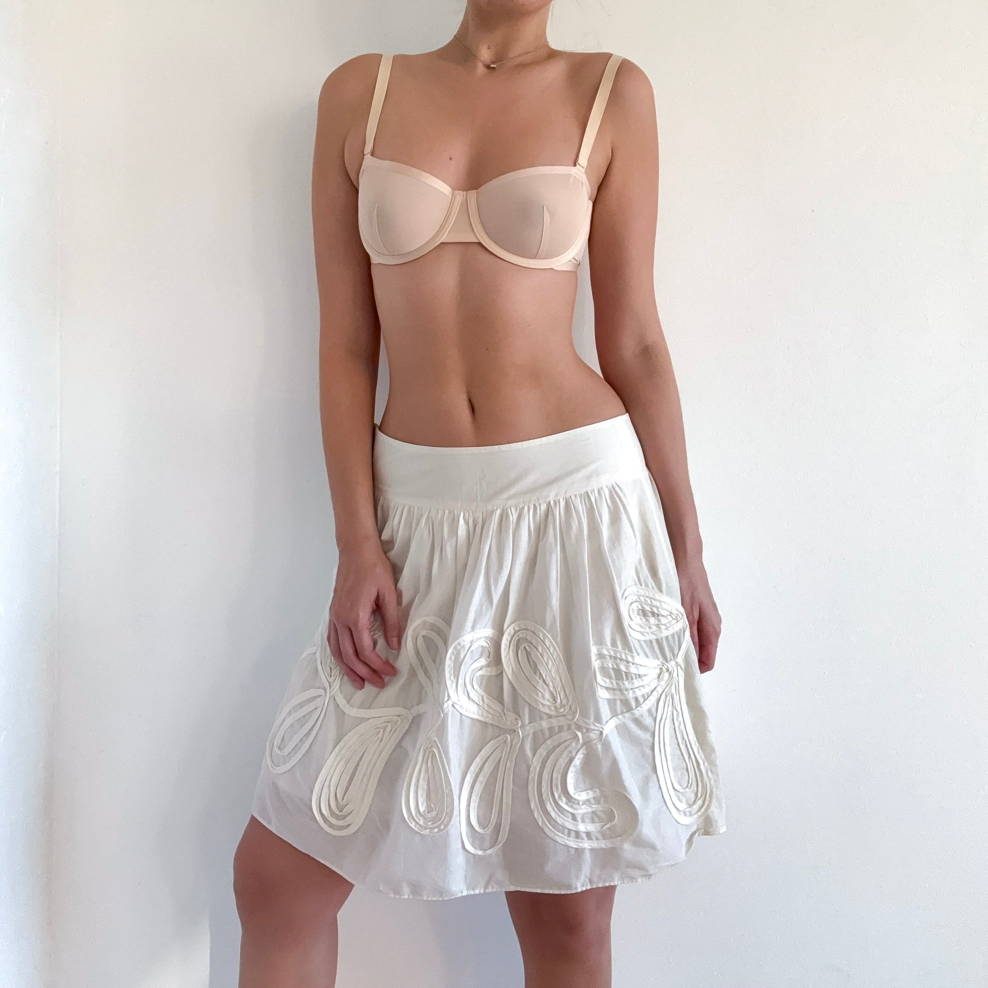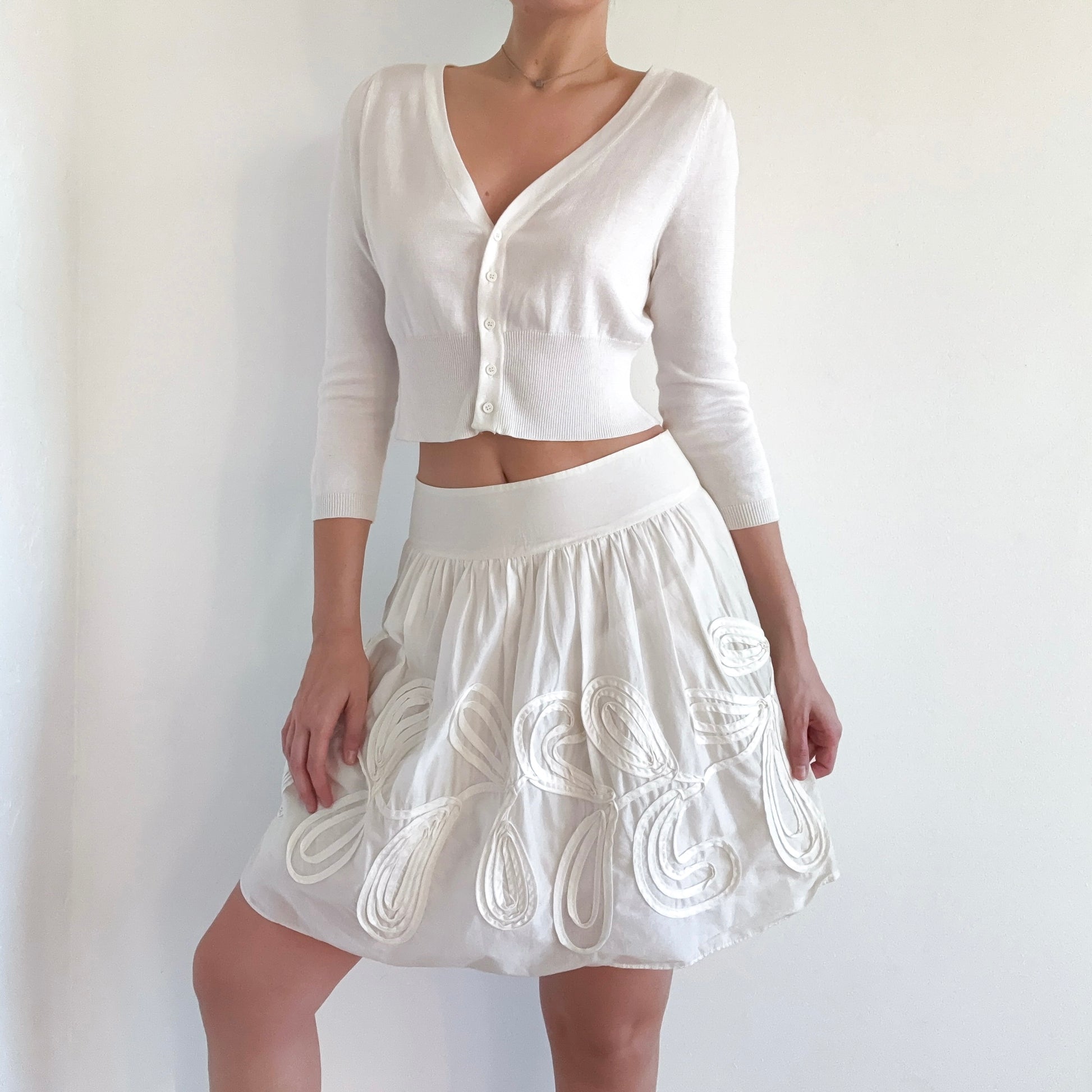 Y2K Ivory Cotton Squiggle Midi Skirt / SZ 2-4