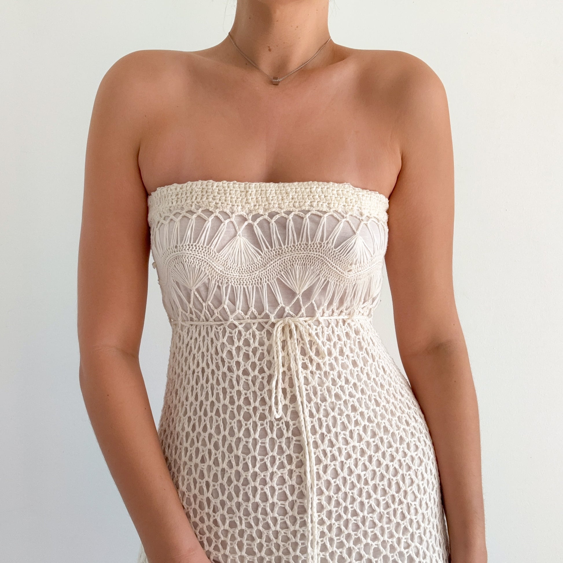 Y2K Ivory Crochet Tube Mini Dress / SZ S/M